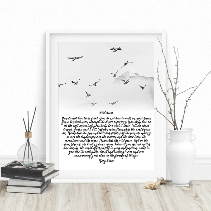 Мэри Оливер, поэма, дикий Джиз, печать, чернила, птицы, акварель, искусство, холст, картина, фермерский Настенный декор, поэзия, искусство