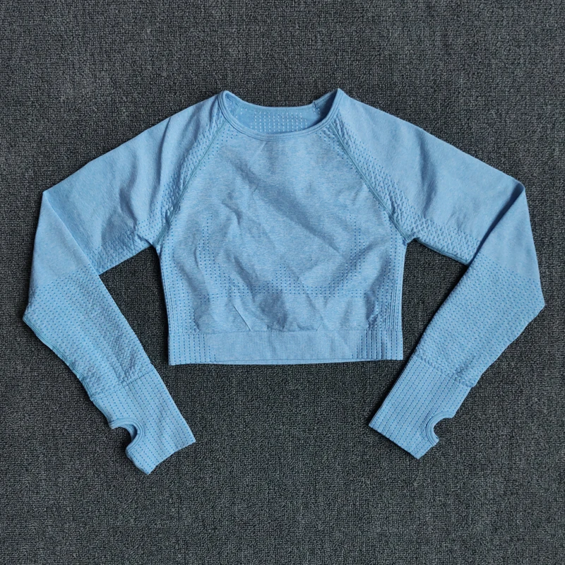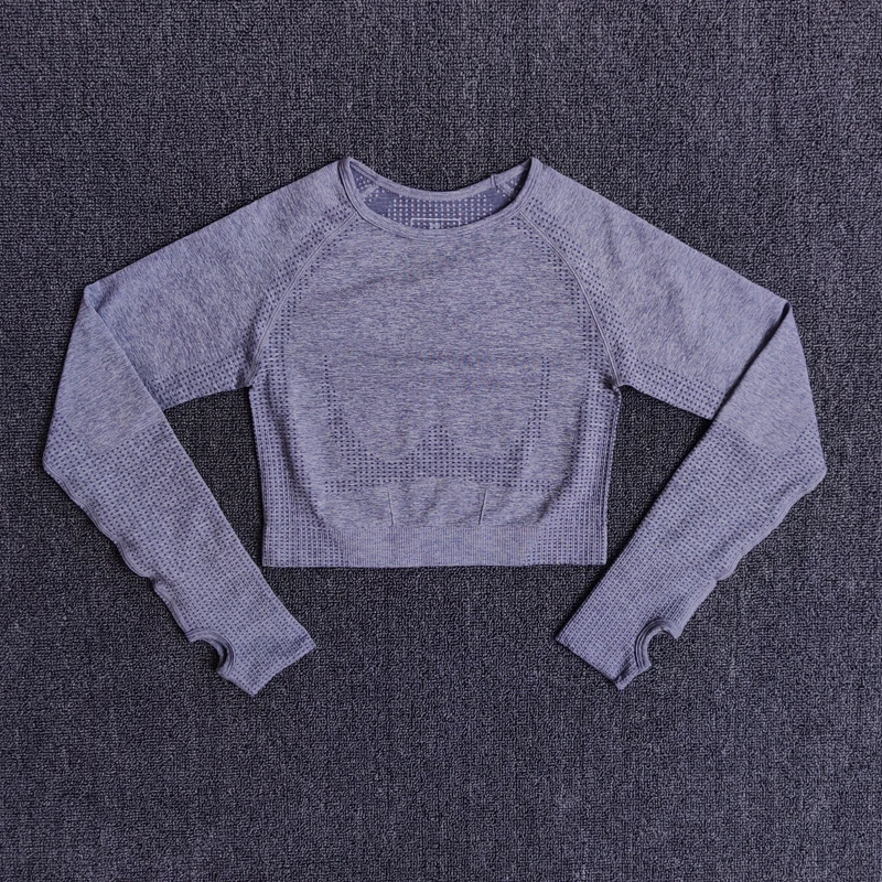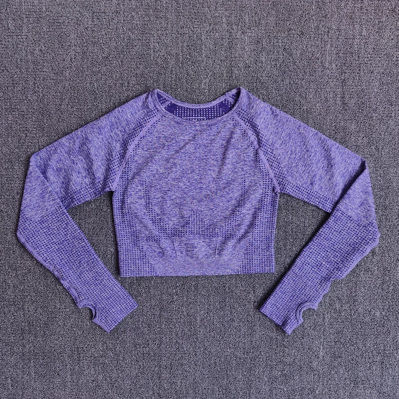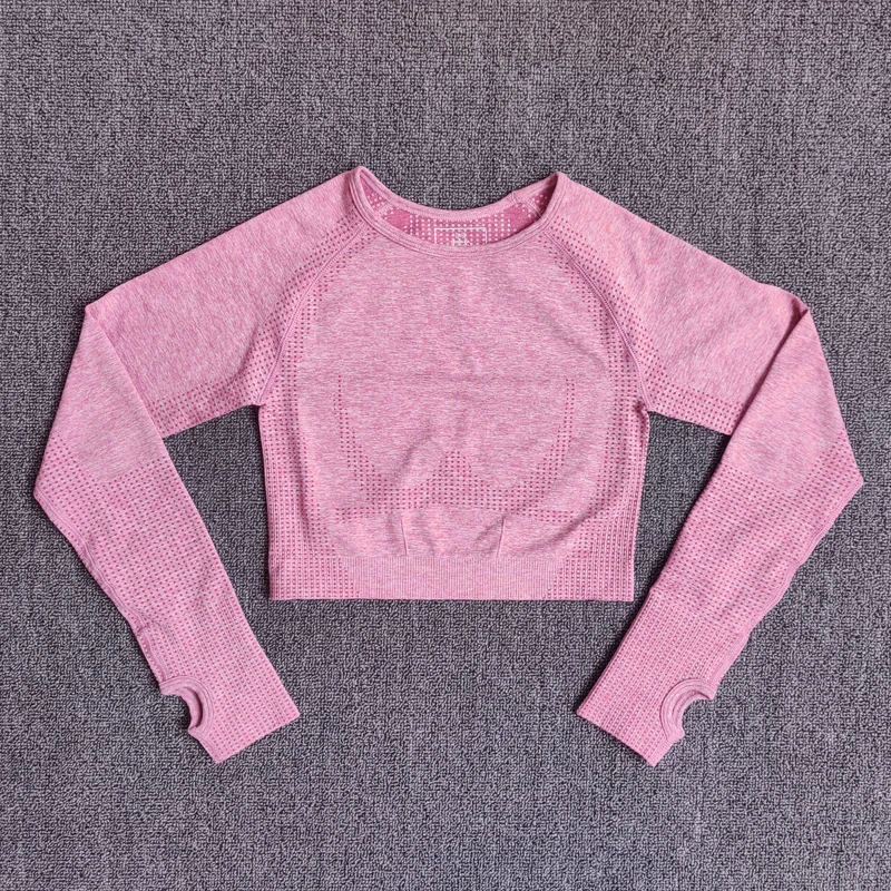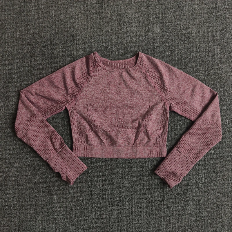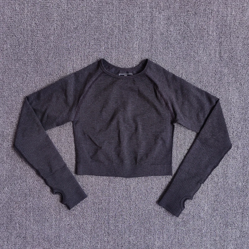 Женский бесшовный укороченный топ с длинным рукавом, топ для йоги с отверстием для большого пальца, бега, фитнеса, тренировок, спортивная одежда
