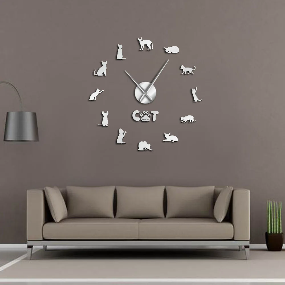 Безрамочные настенные часы I Love My Devon Rex Cat, беззвучные зеркальные наклейки на стену, декор для самостоятельного украшения, с изображением кота Devon Rex