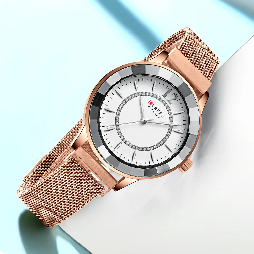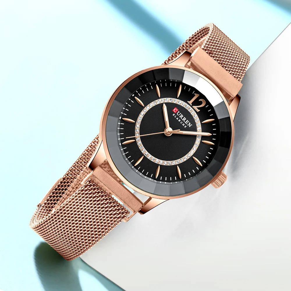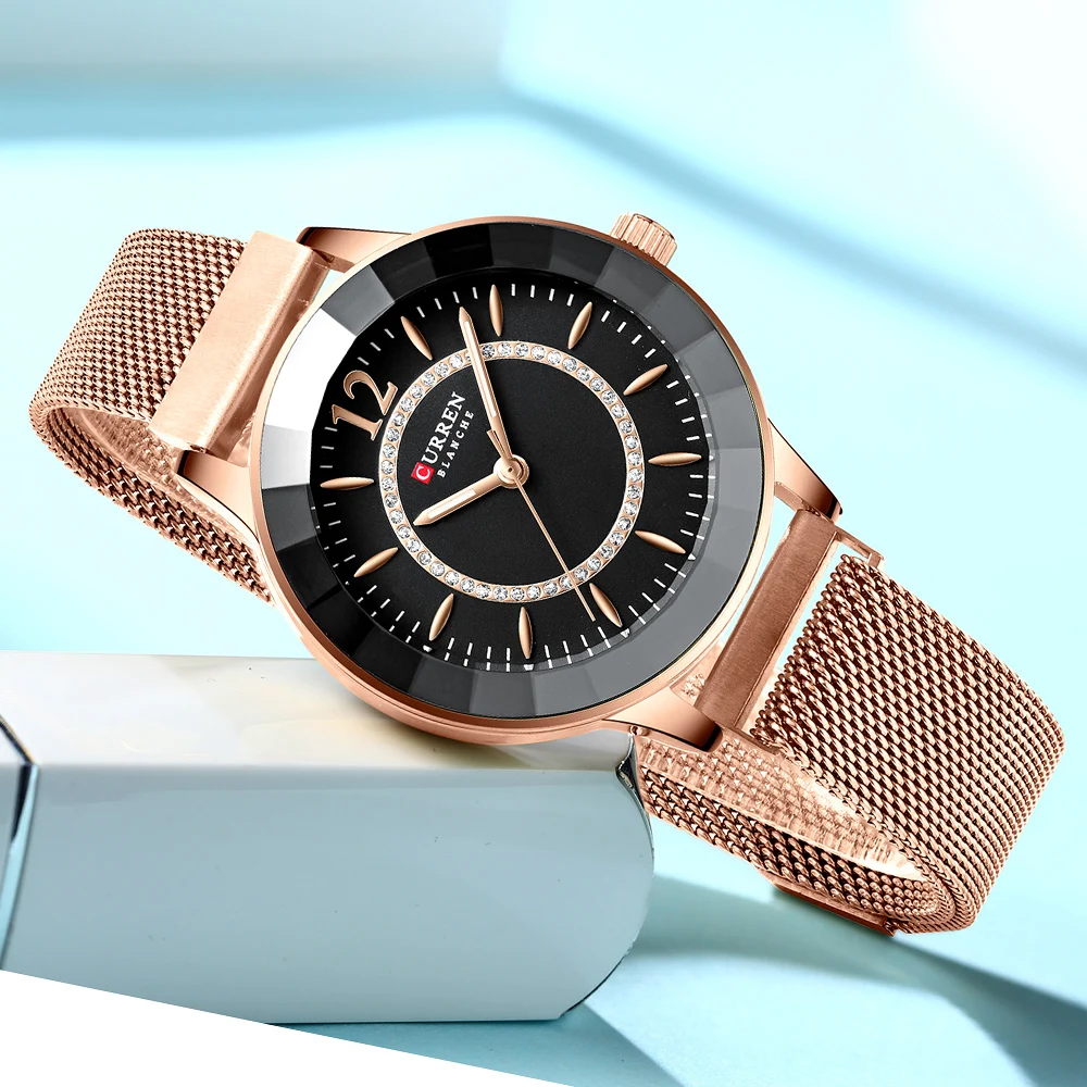 Роскошные Кварцевые часы CURREN 9066, модный дизайн, очаровательные часы Стразы, женские часы с браслетом из нержавеющей стали, женские часы