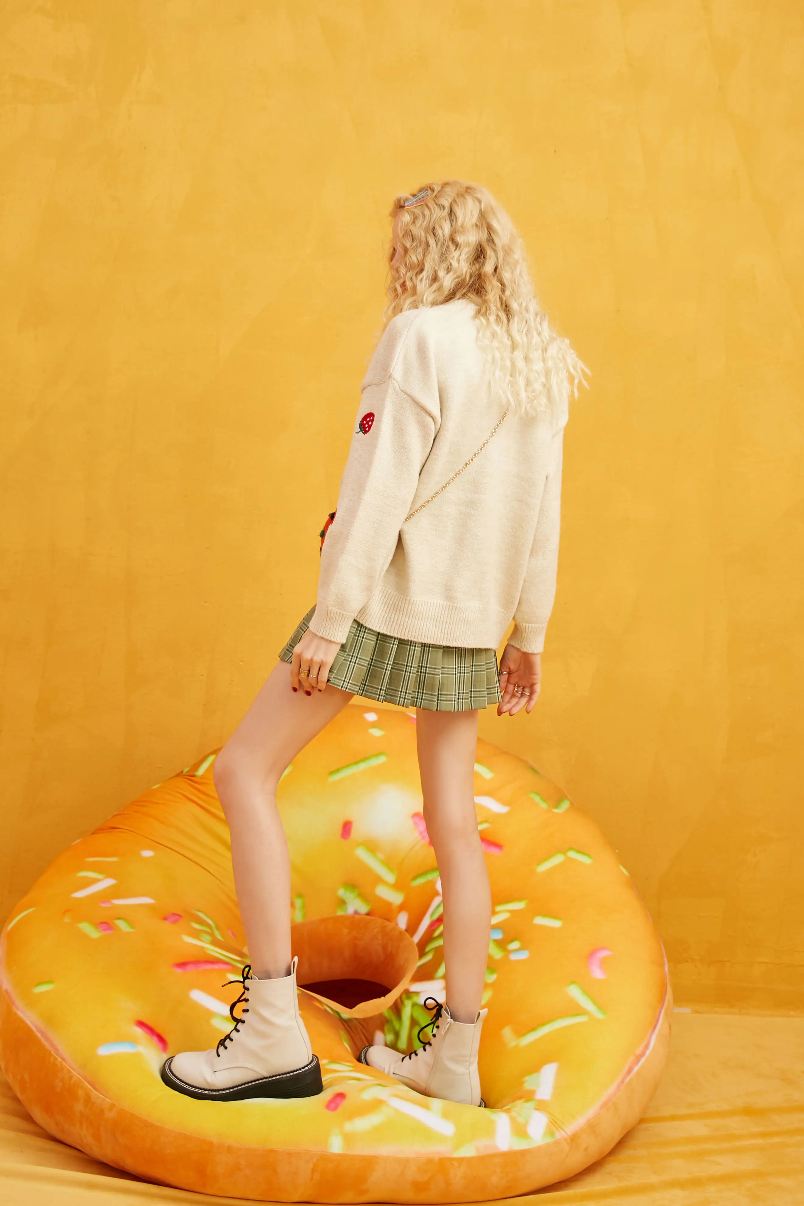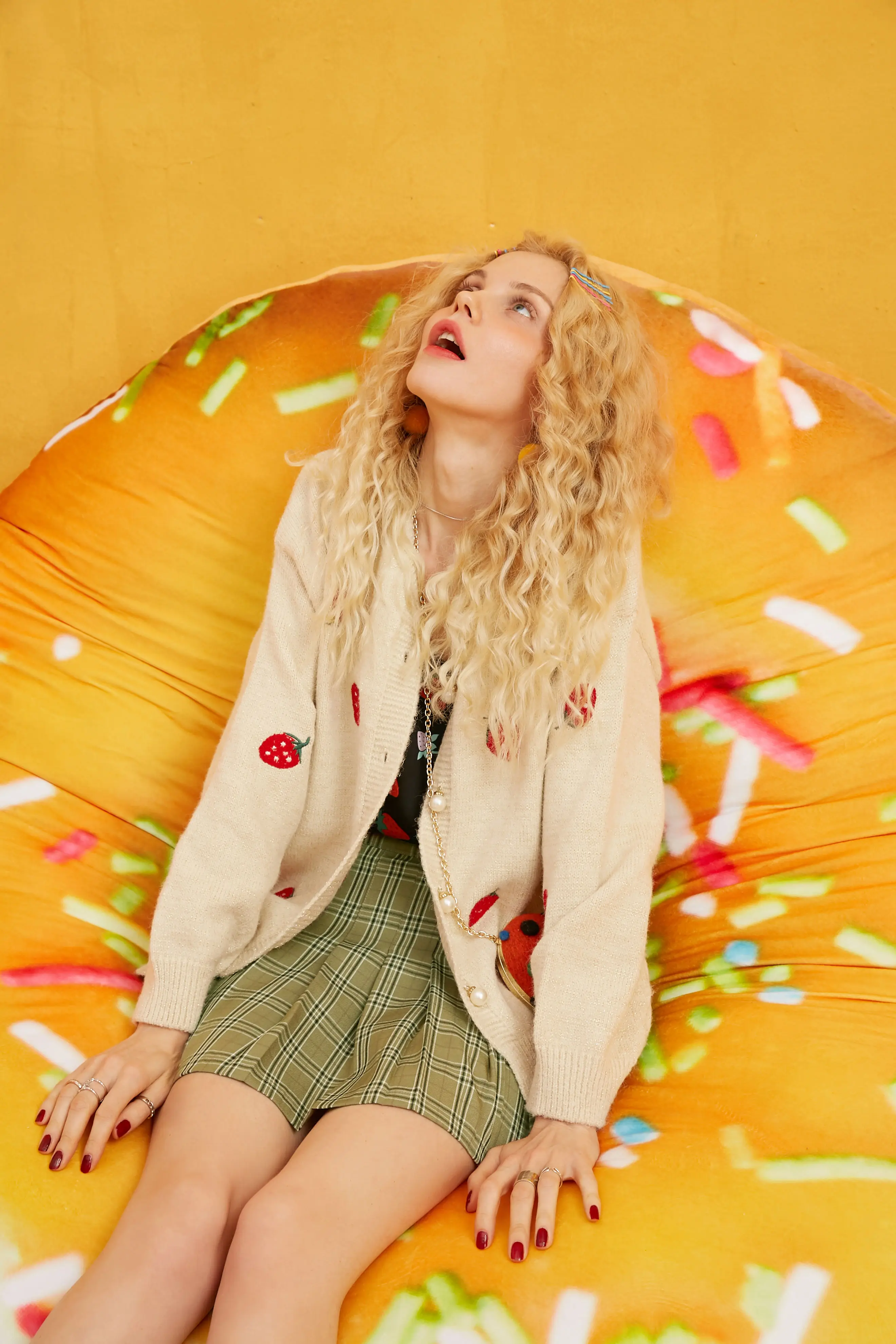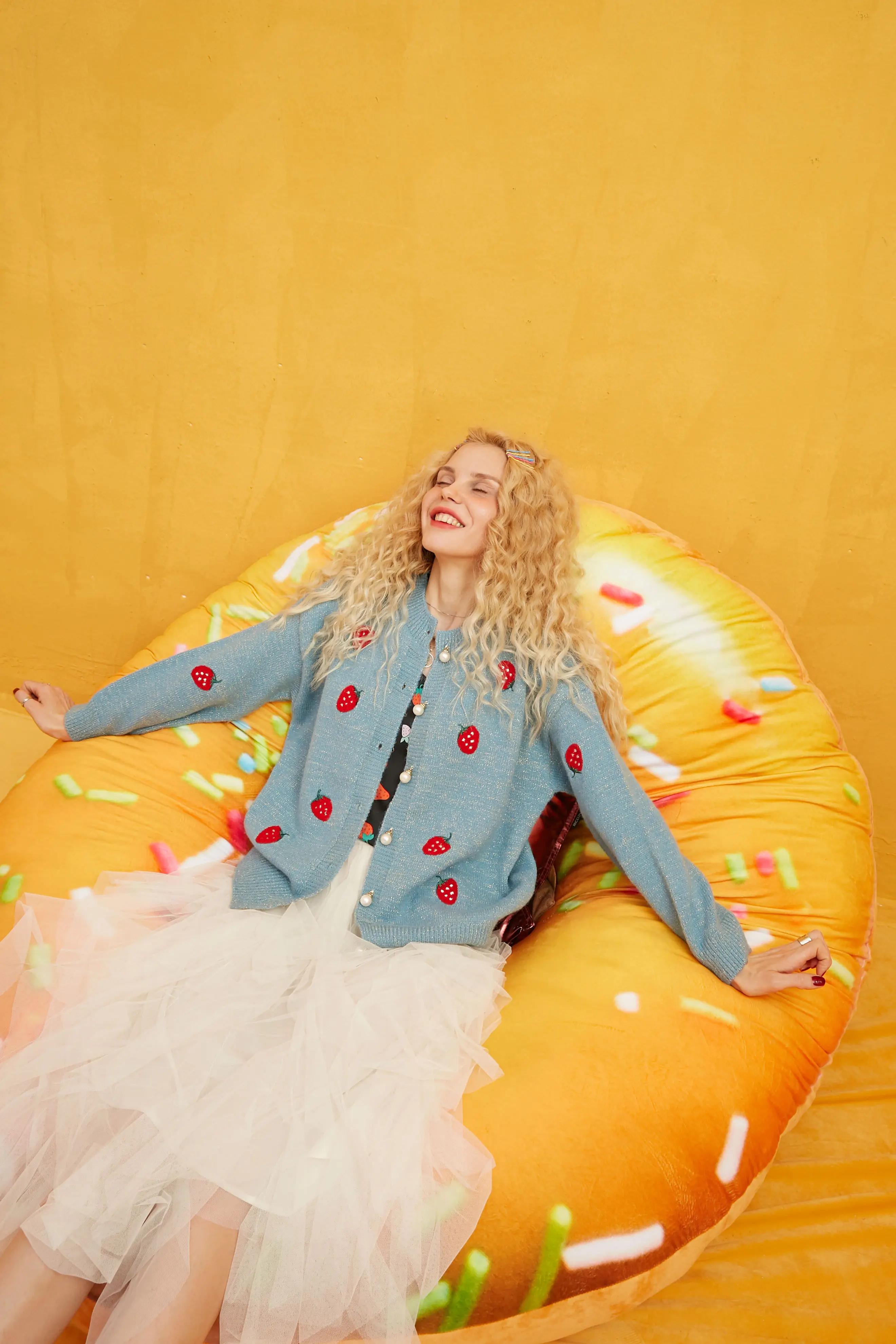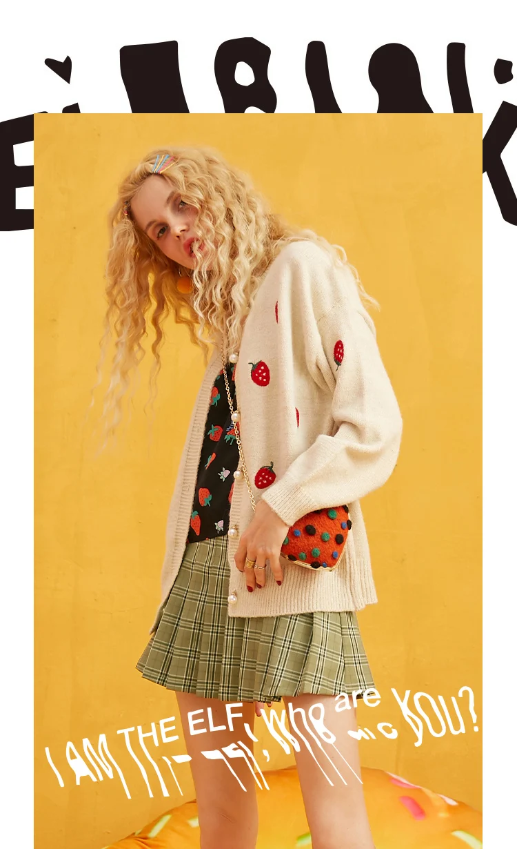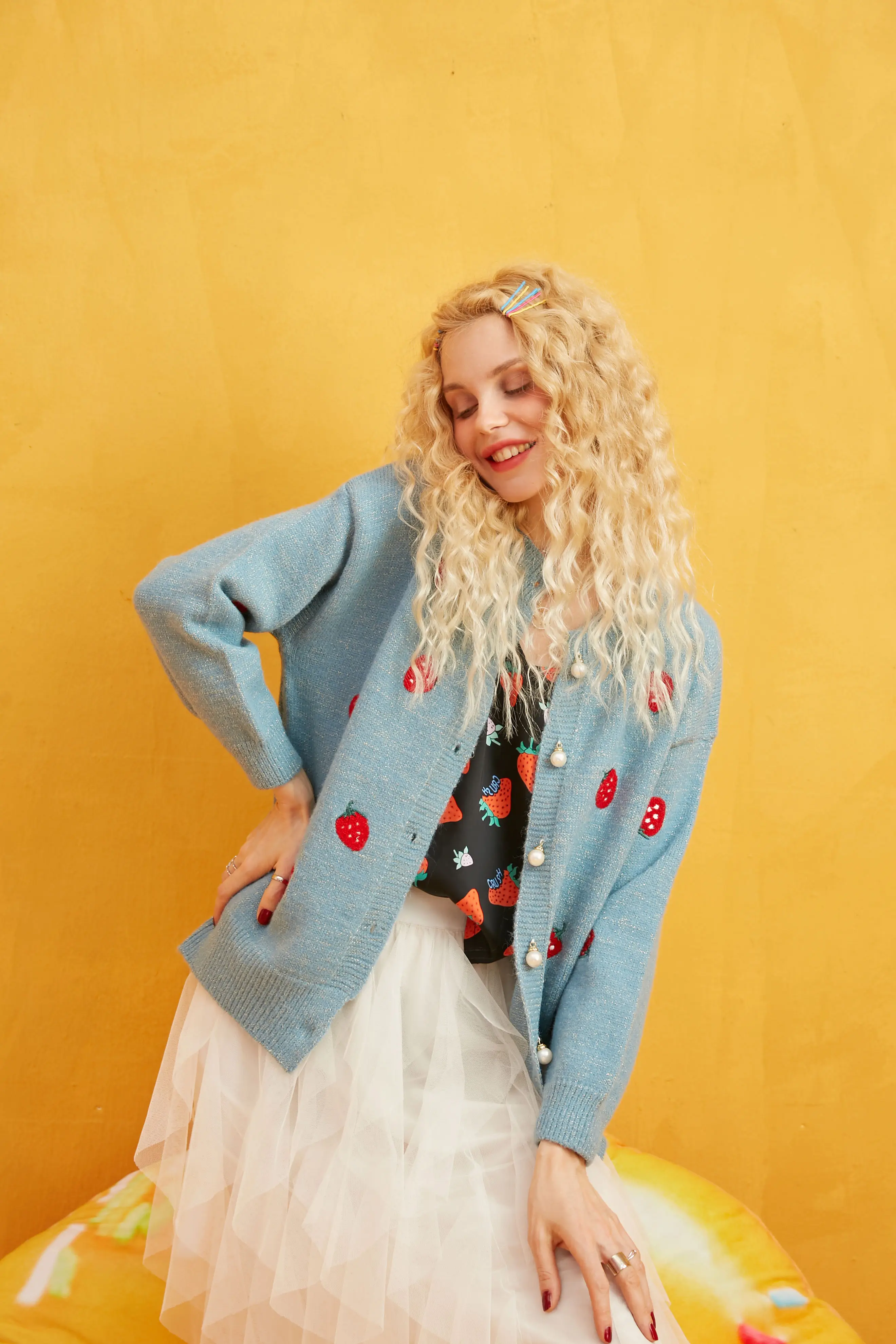Женский кардиган ELFSACK, с вышивкой в виде клубники и жемчуга, на пуговицах, 2019, осень, с длинным рукавом, золотой шелк, корейский