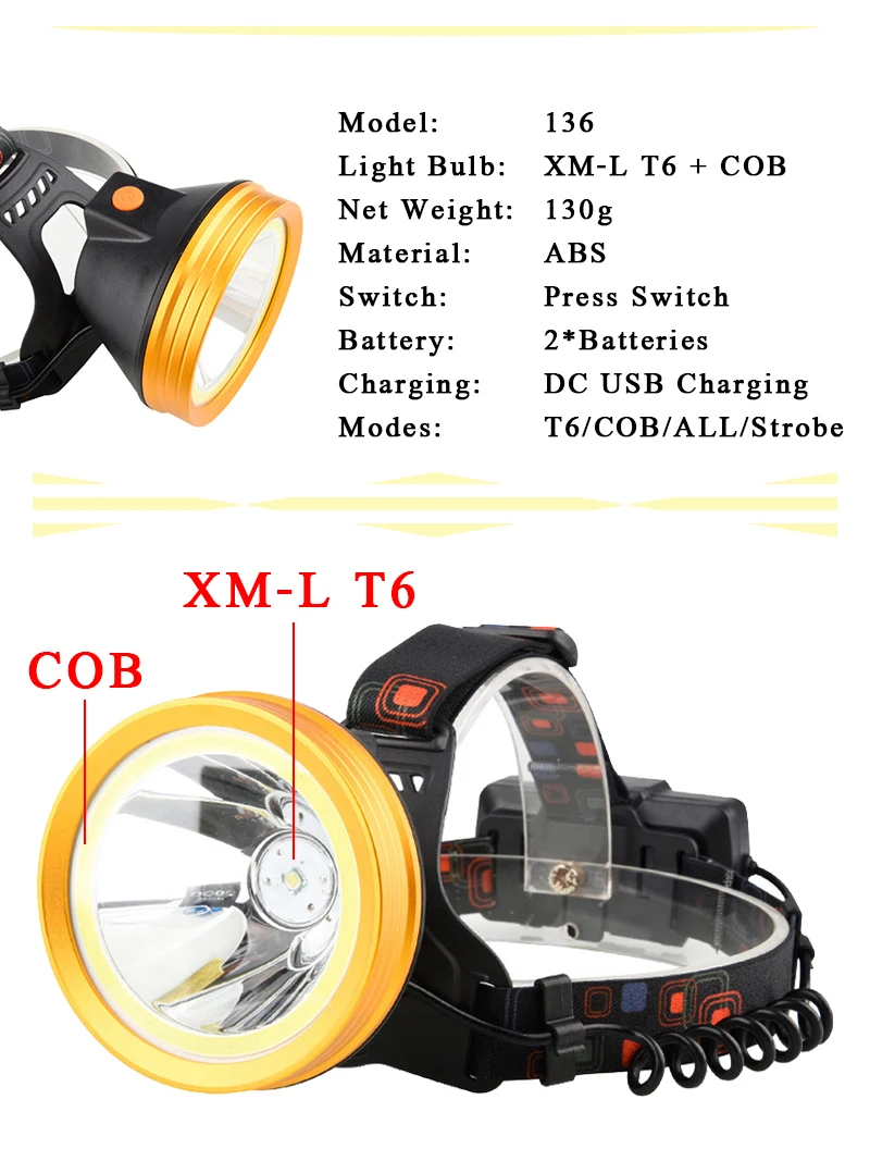 Litwod Z90 5000lm CREE xm-l t6 + COB светодиодные фары для подводной охоты Мощный светодиодный налобный фонарь ЕЭС 18650 батарея перезаряжаемая лобовой фонарь Открытый Кемпинг