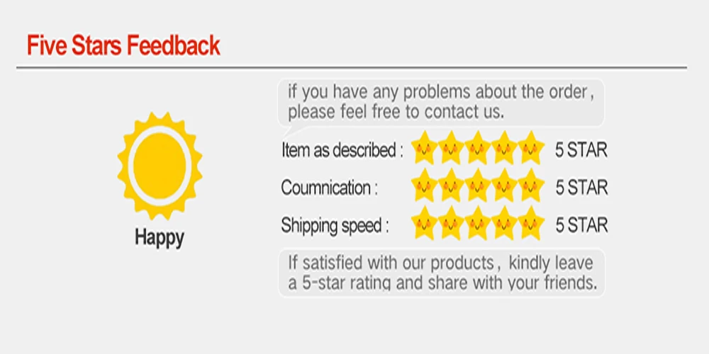 Мы поддерживаем высокие стандарты качества и стремимся к 100% удовлетворенности клиентов! Отзывы очень важны для нашего бизнеса, если вы не удовлетворены, пожалуйста, свяжитесь с нами вовремя, мы постараемся сделать все возможное, чтобы Вы остались довольны. Невозможно решить проблемы, если мы не знаем о них! Большое спасибо!