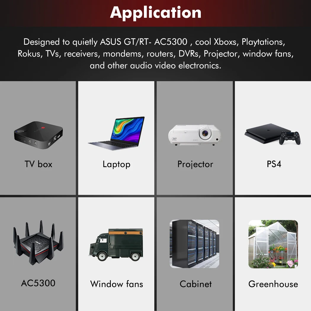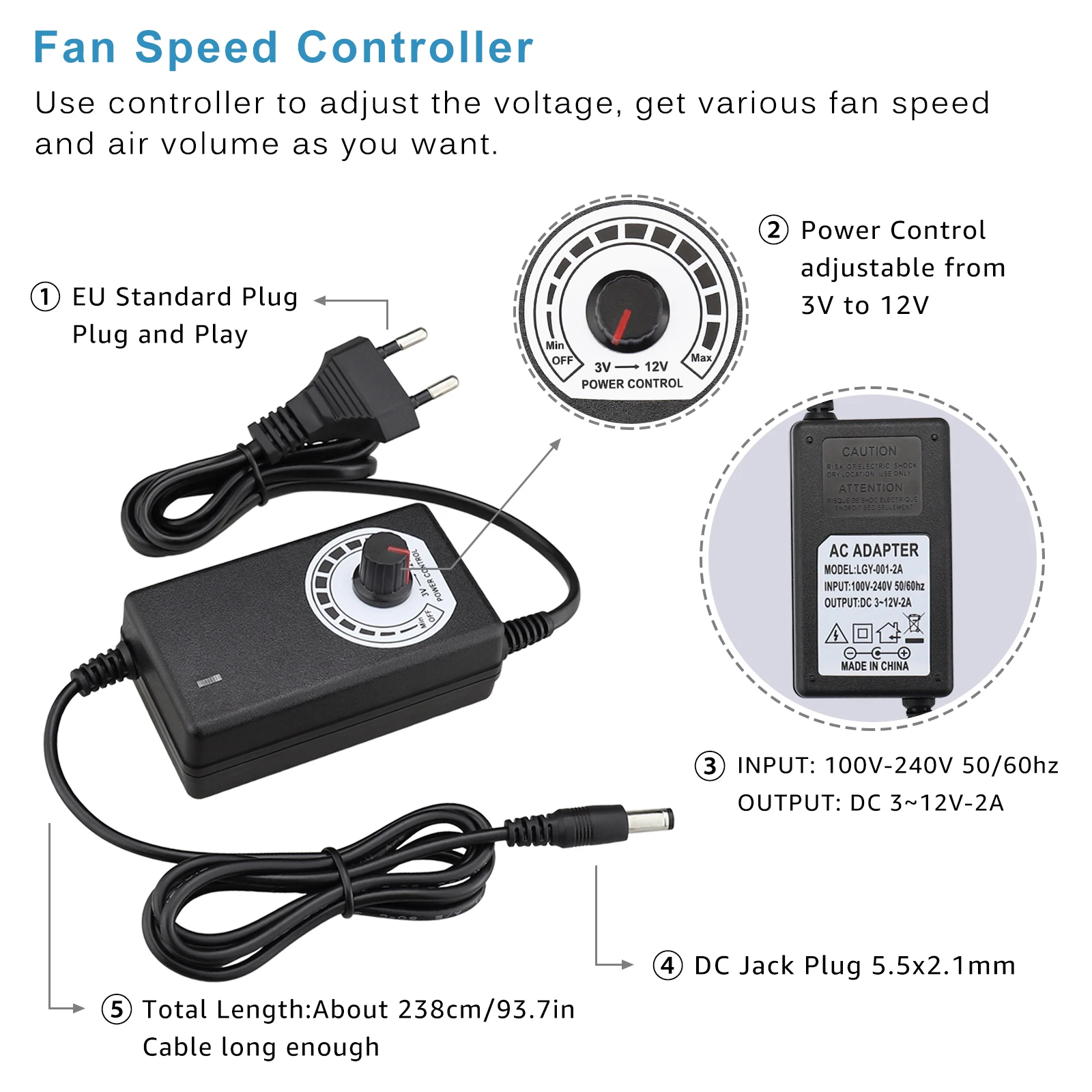Вентиляторы хорошего качества. Об/мин/блок питания поставляется с вилкой 110 В (американский), я был в курсе этого. Регулировка скорости вращения идеальна. Доставка была быстрой! Спасибо магазину DooCool