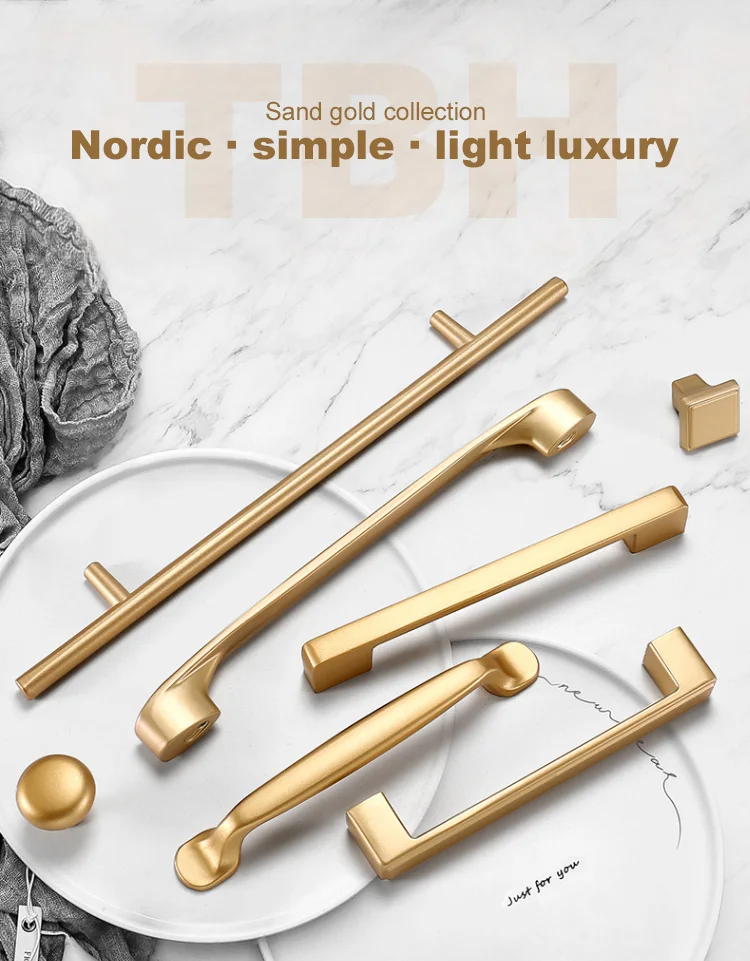 Матовые золотые дверные ручки для мебели шкафов и ящиков Алюминиевый сплав Современный кухонный шкаф ручки