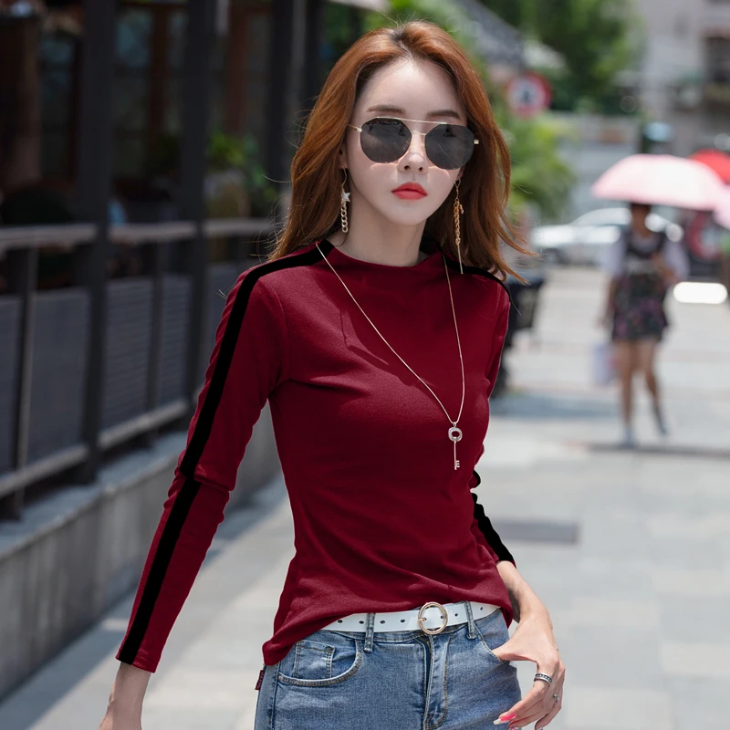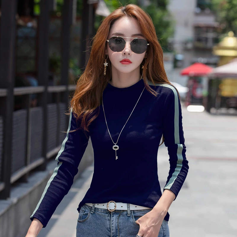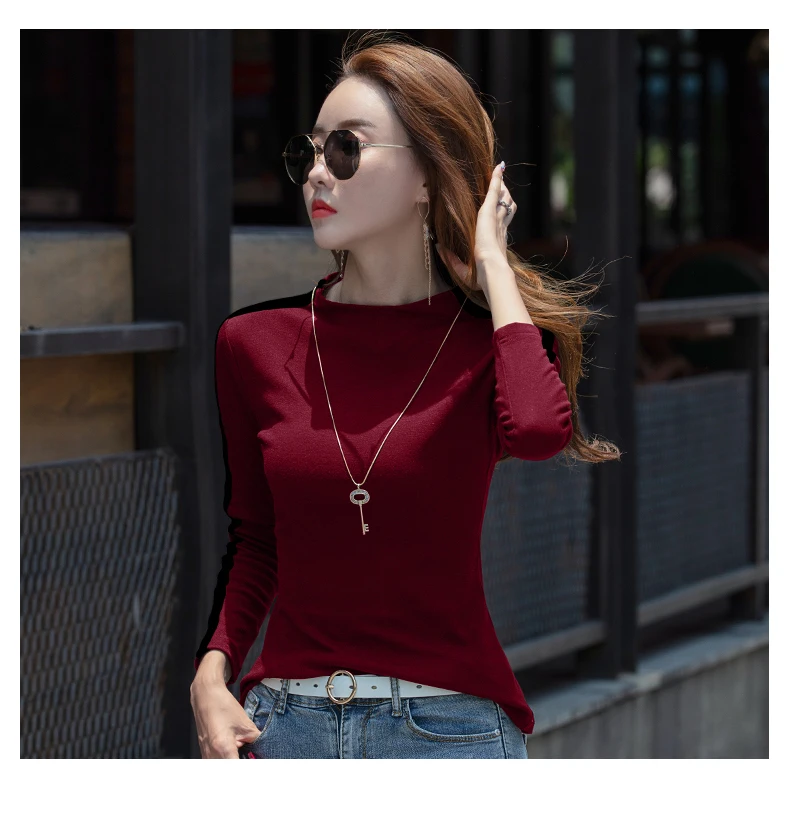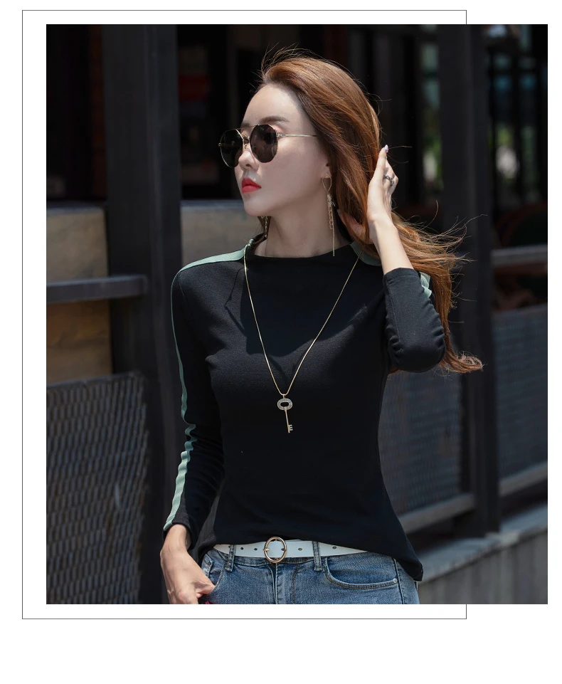 Новинка 2022, зимняя футболка, женские топы, футболка с длинным рукавом, Осенние Хлопковые женские футболки, Повседневные базовые женские футболки, женская одежда