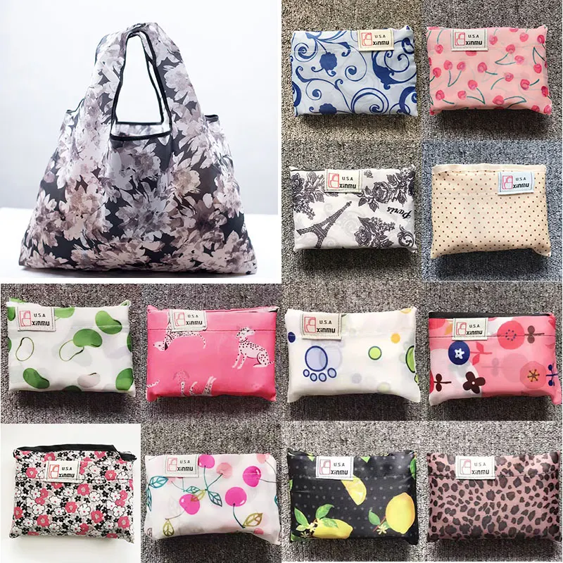 Экологичная женская сумка-тоут, складные многоразовые сумки, милая собака, Леопардовый цветочный принт, сумки в красную полоску, Лидер продаж