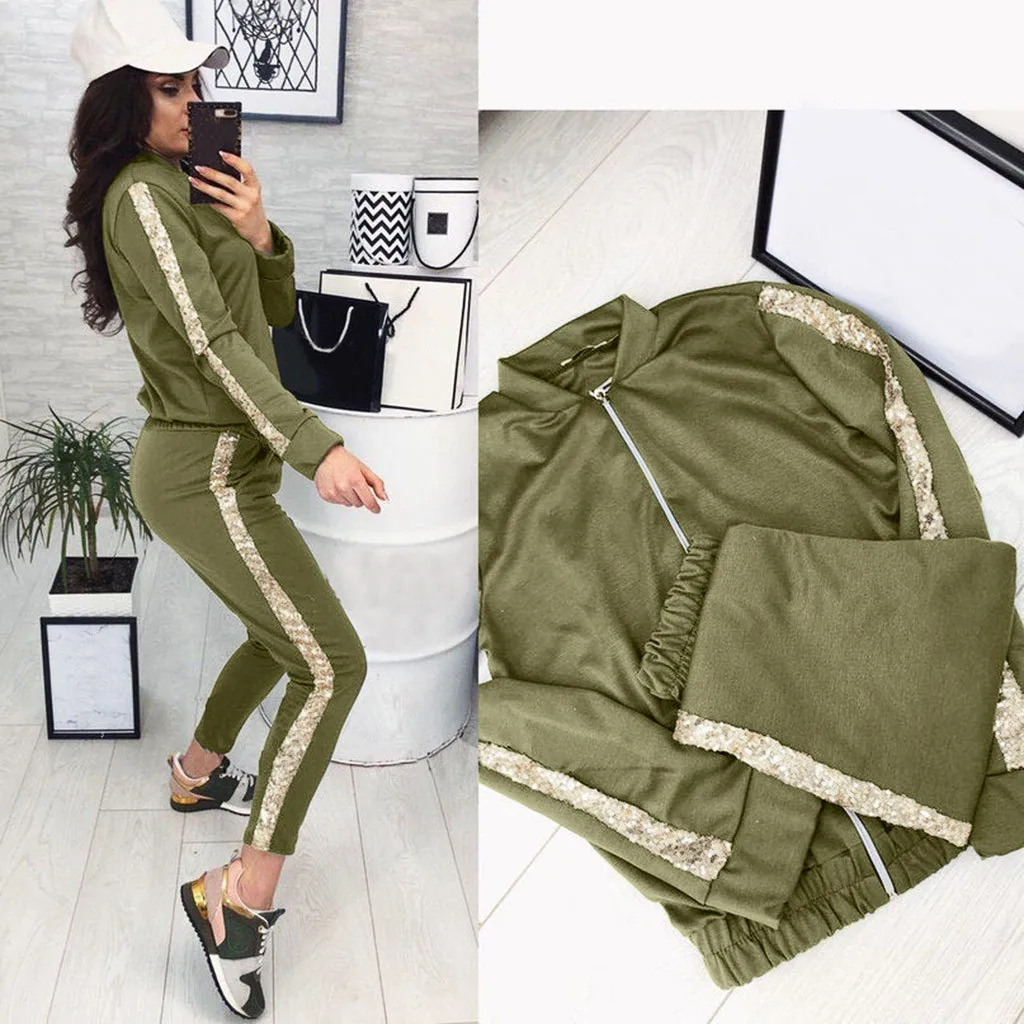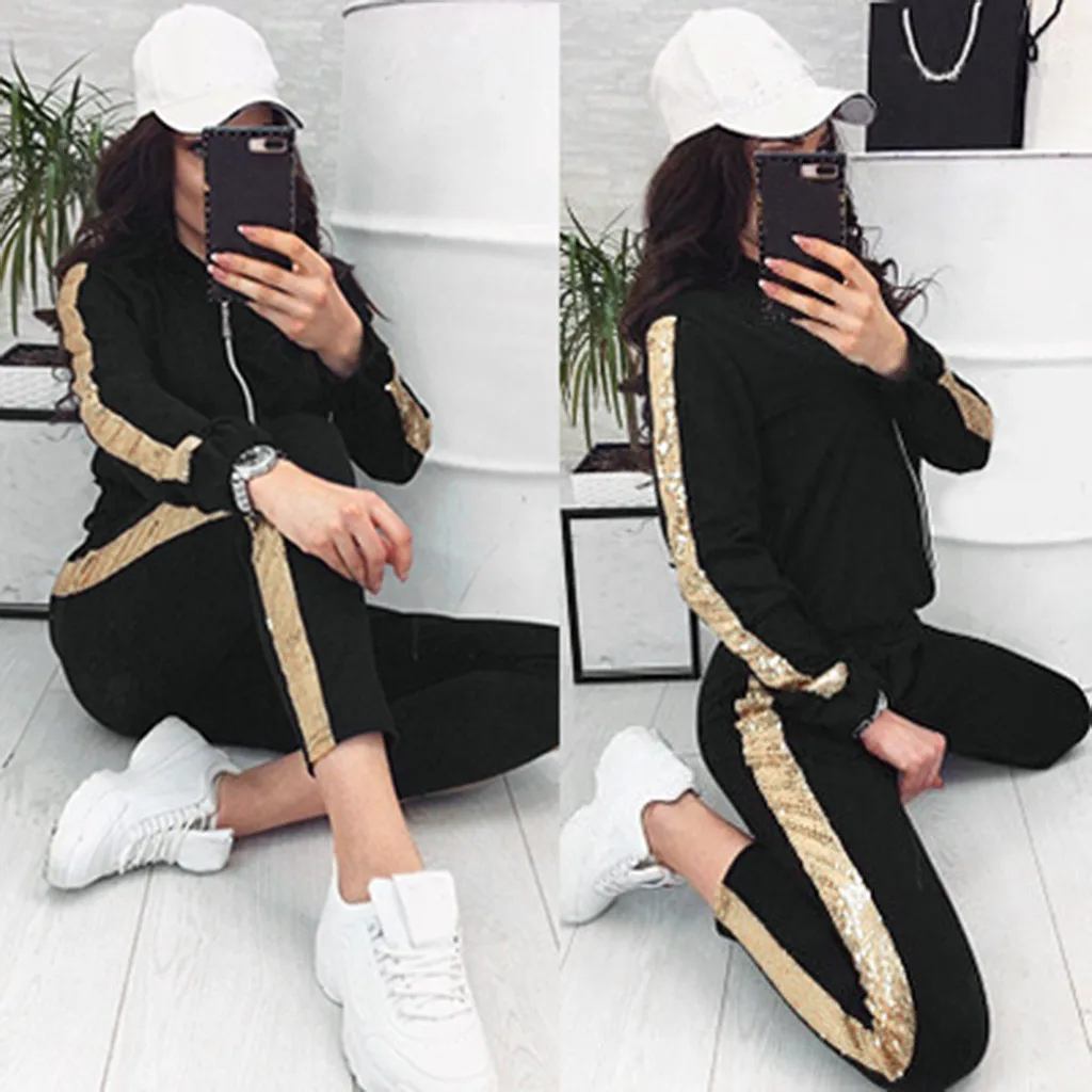 Женский спортивный костюм Womail, Осенний модный костюм из двух предметов, куртка с длинным рукавом и блестками + набор длинных брюк, комплект из 2 предметов, женский спортивный костюм 831
