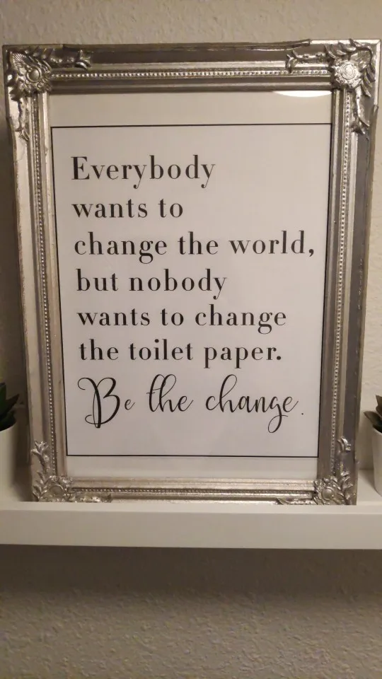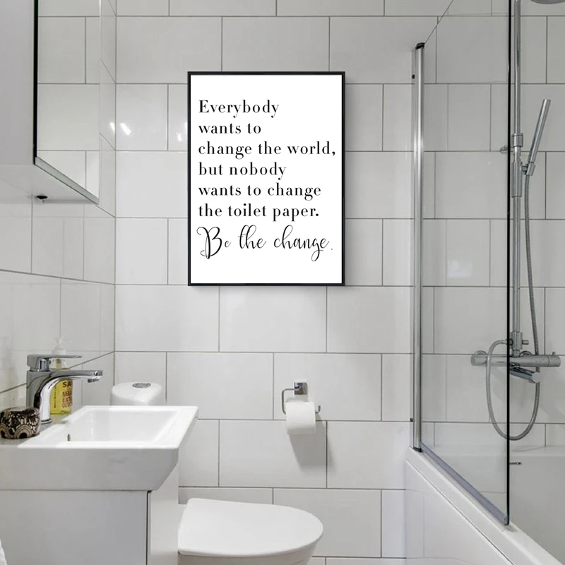 Ванная комната Цитата знак печати черный белый плакат все хотят изменить мир туалетная бумага искусство холст живопись Ванная комната Декор