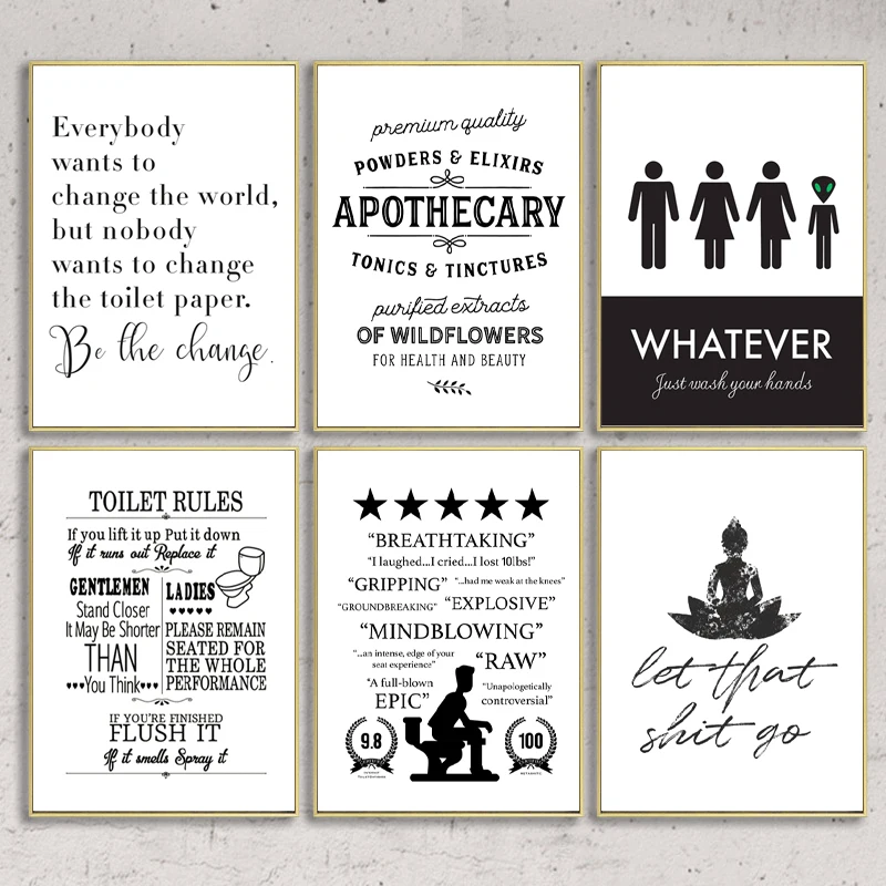 Bathroom Sign Quote Prints Artwork Typography Canvas Art Prints