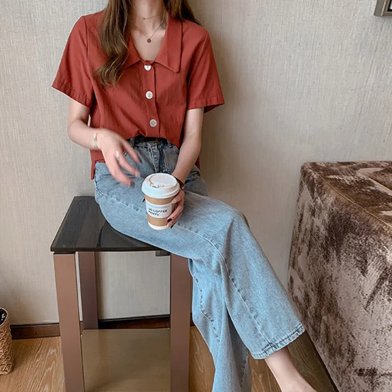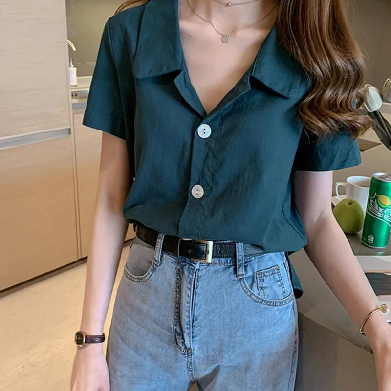 1. Этот воротник с лацканами и однотонная блузка с коротким рукавом свободного кроя, удобно носить и доставит вам больше удовольствия.