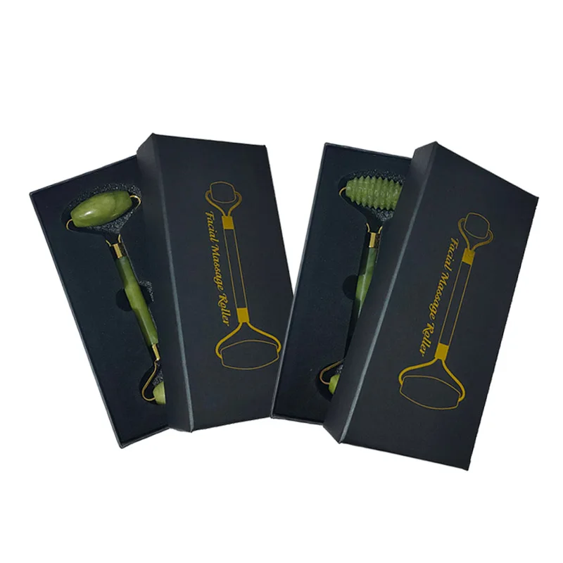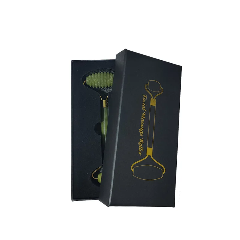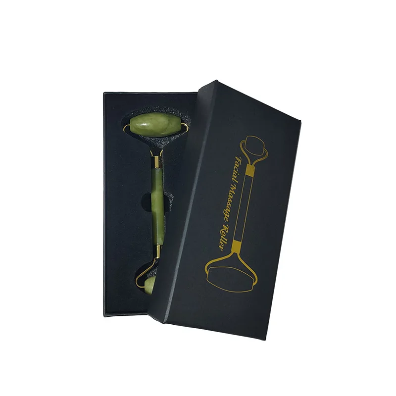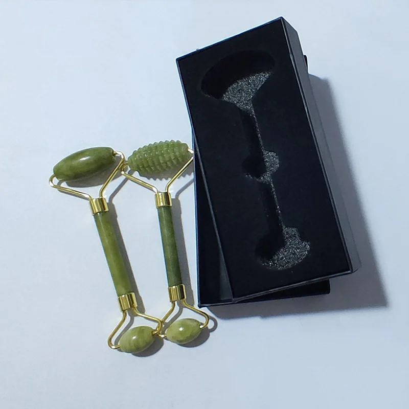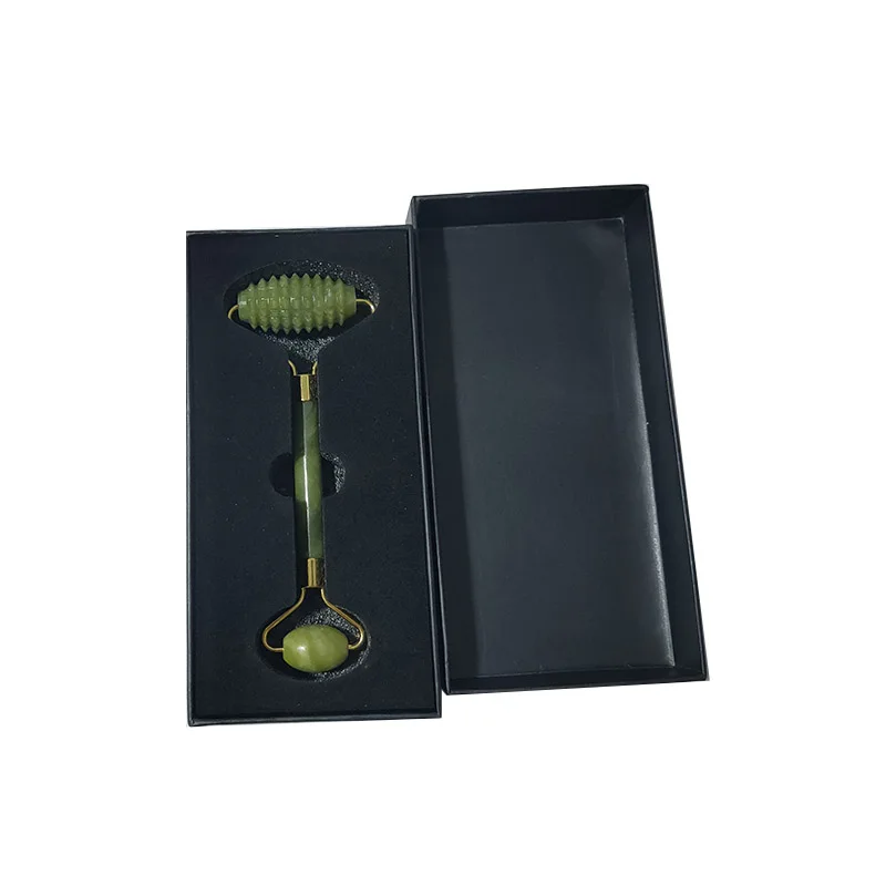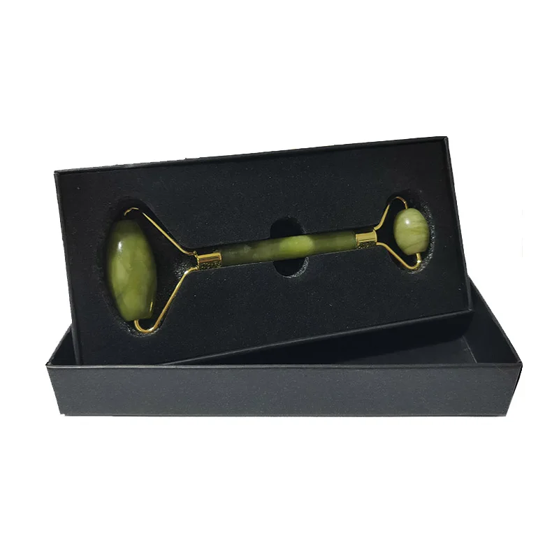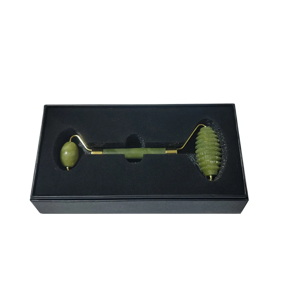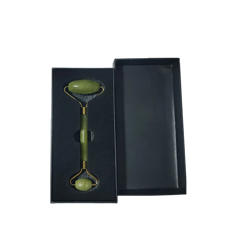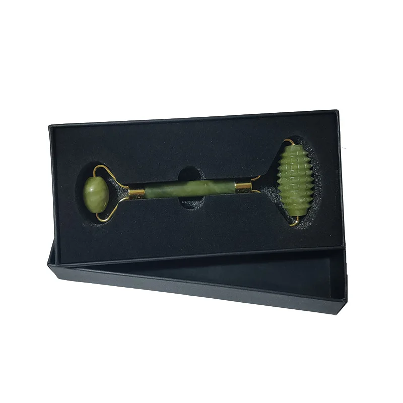 Роликовый лицевой массажный ролик с зеленым нефритом с двойной головкой, массажер для лица из натурального камня, инструмент для расслабления лица с коробкой