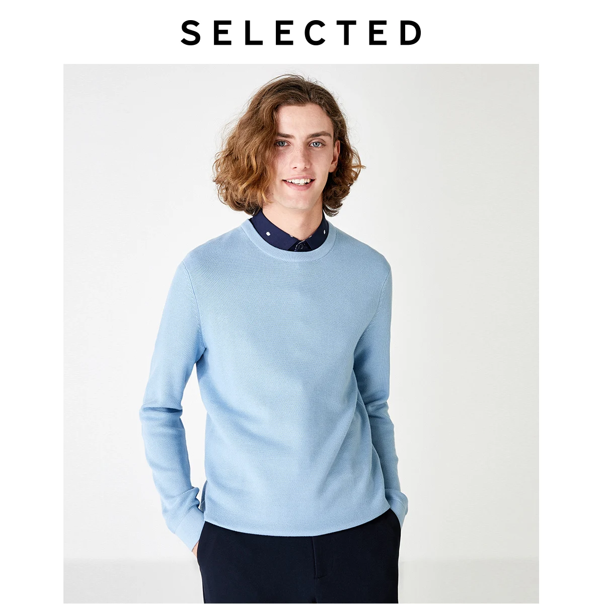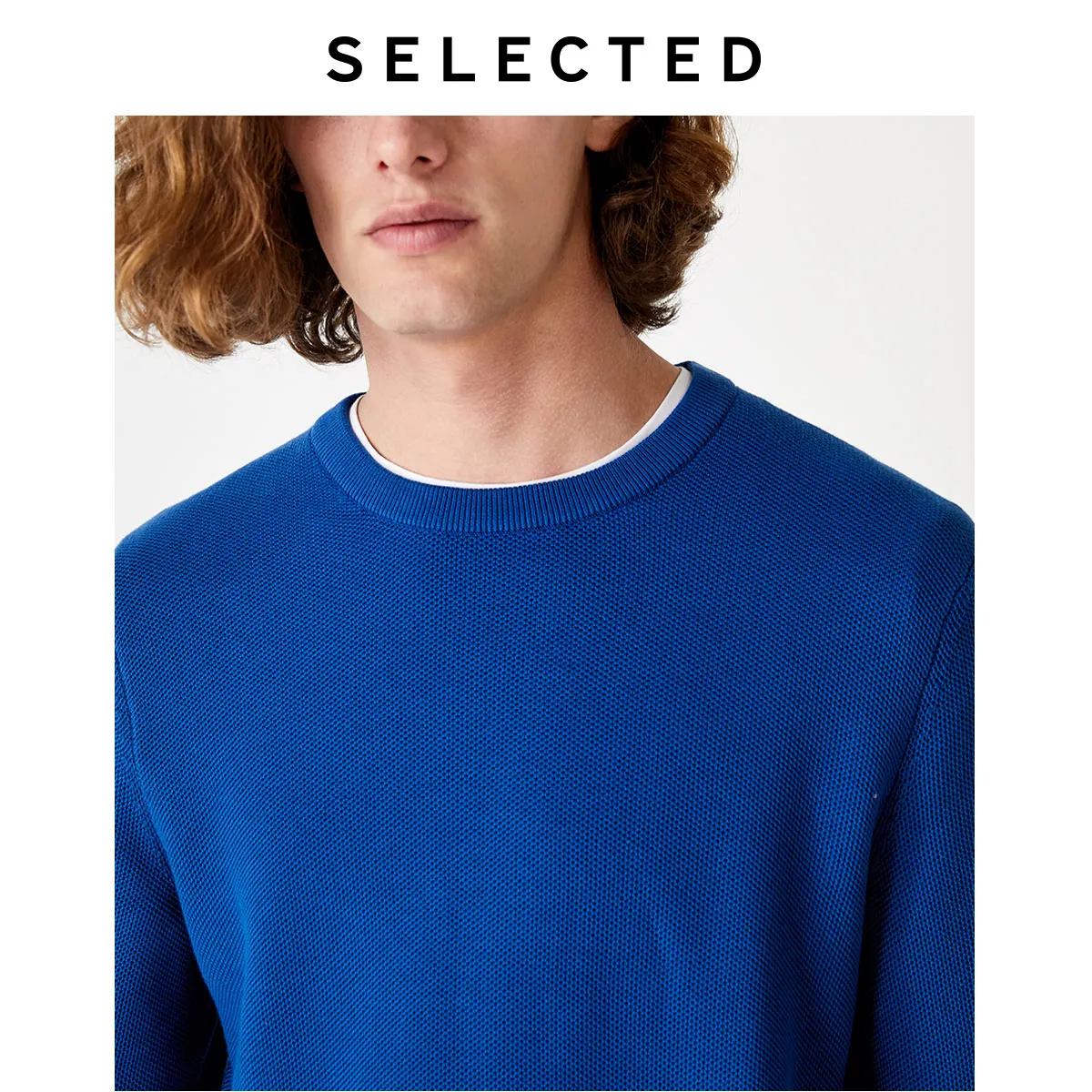 Мужской трикотажный свитер с длинным рукавом и круглым вырезом