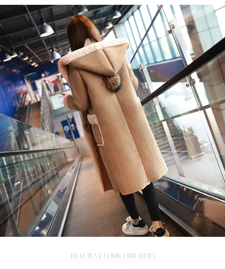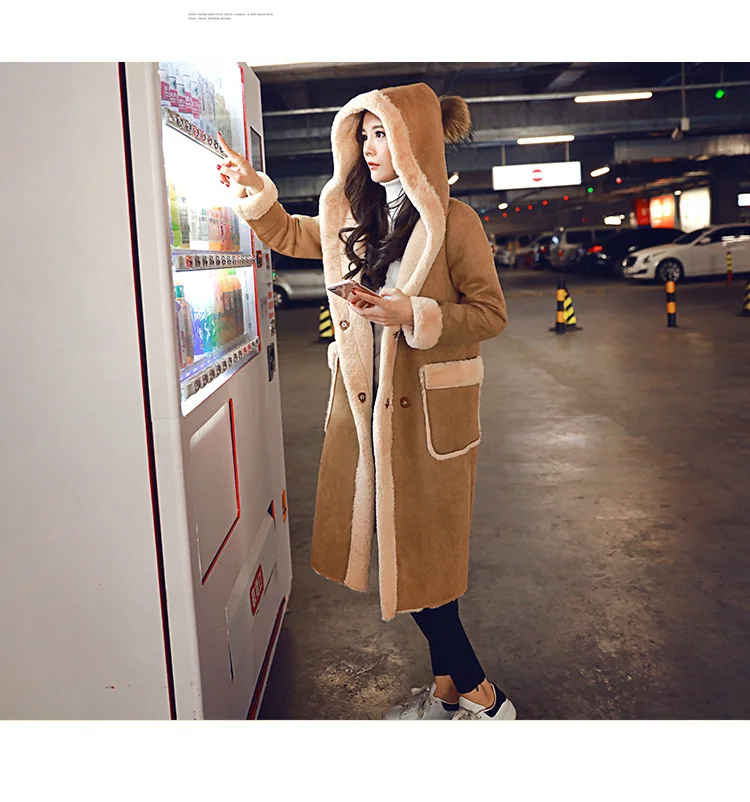 Женская кожаная куртка с капюшоном, зимняя, длинная, из искусственного меха, с подкладкой