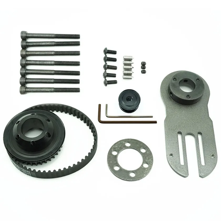1 X шкив для колеса1 X шкив для двигателя1 X Крепежная пластина1 x кронштейн1 х ремень7 болтов2 X l-клавиша12 винтов