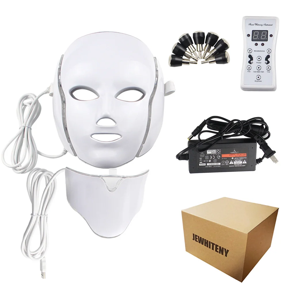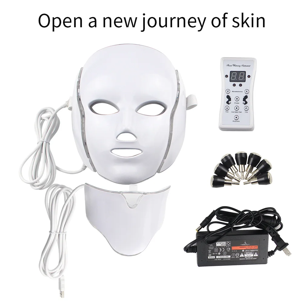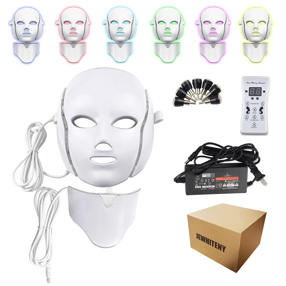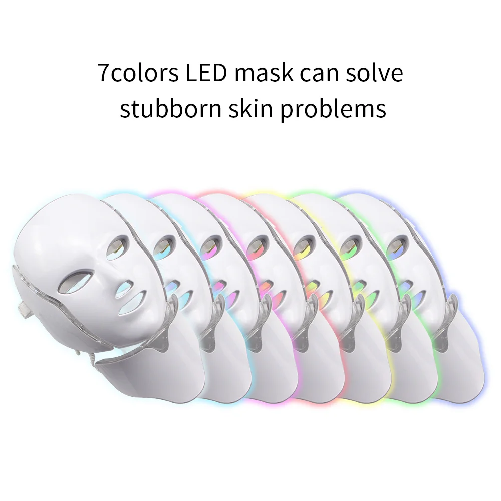 7-Цвет Электрический светодиодный маска для лица и горло изготовлено на станке Фотон Красота анти-лечение от прыщей, отбеливание устройство светодиодный маска для кожи шеи