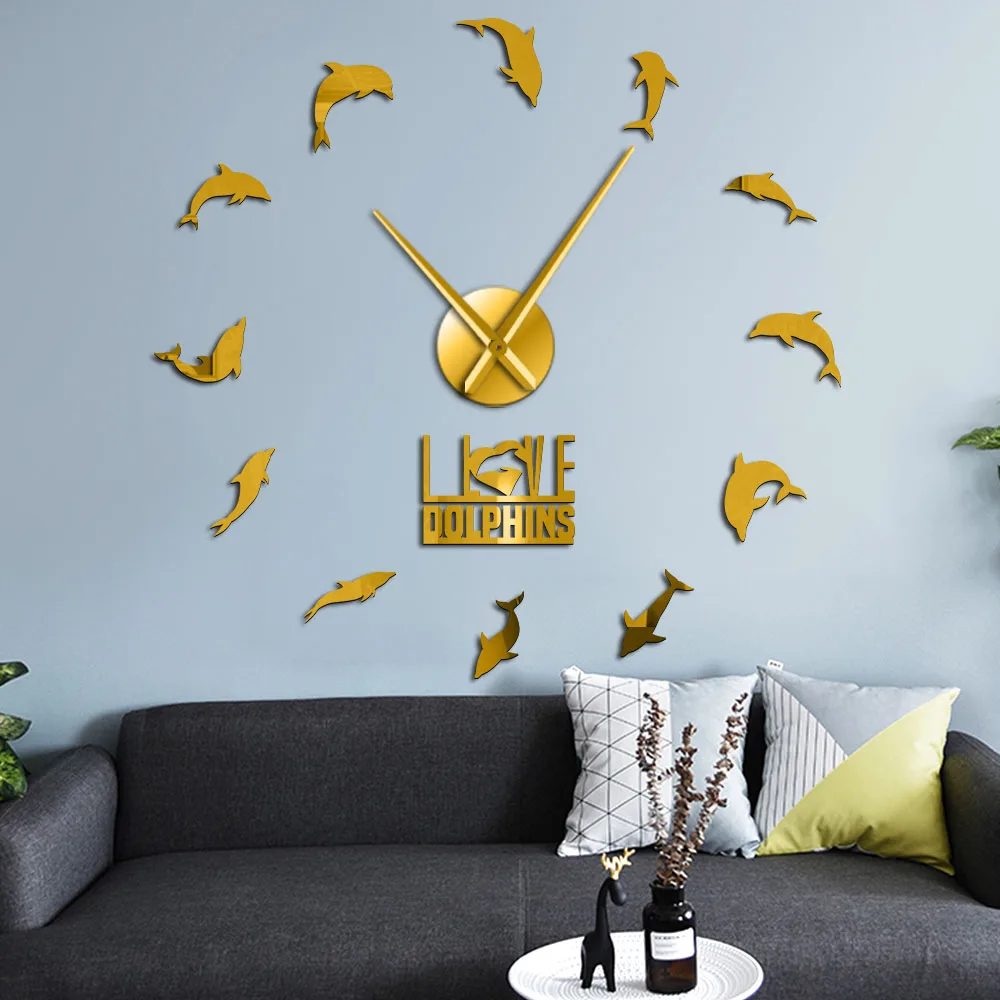 Прыгающие дельфины DIY большие бесшумные настенные часы Подводное море я люблю дельфинов настенные художественные наклейки декор бескаркасные гигантские часы