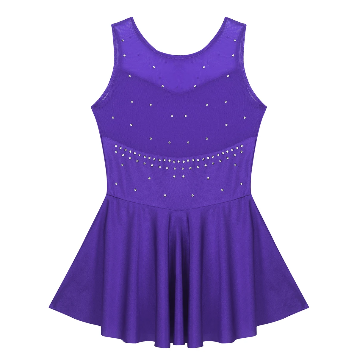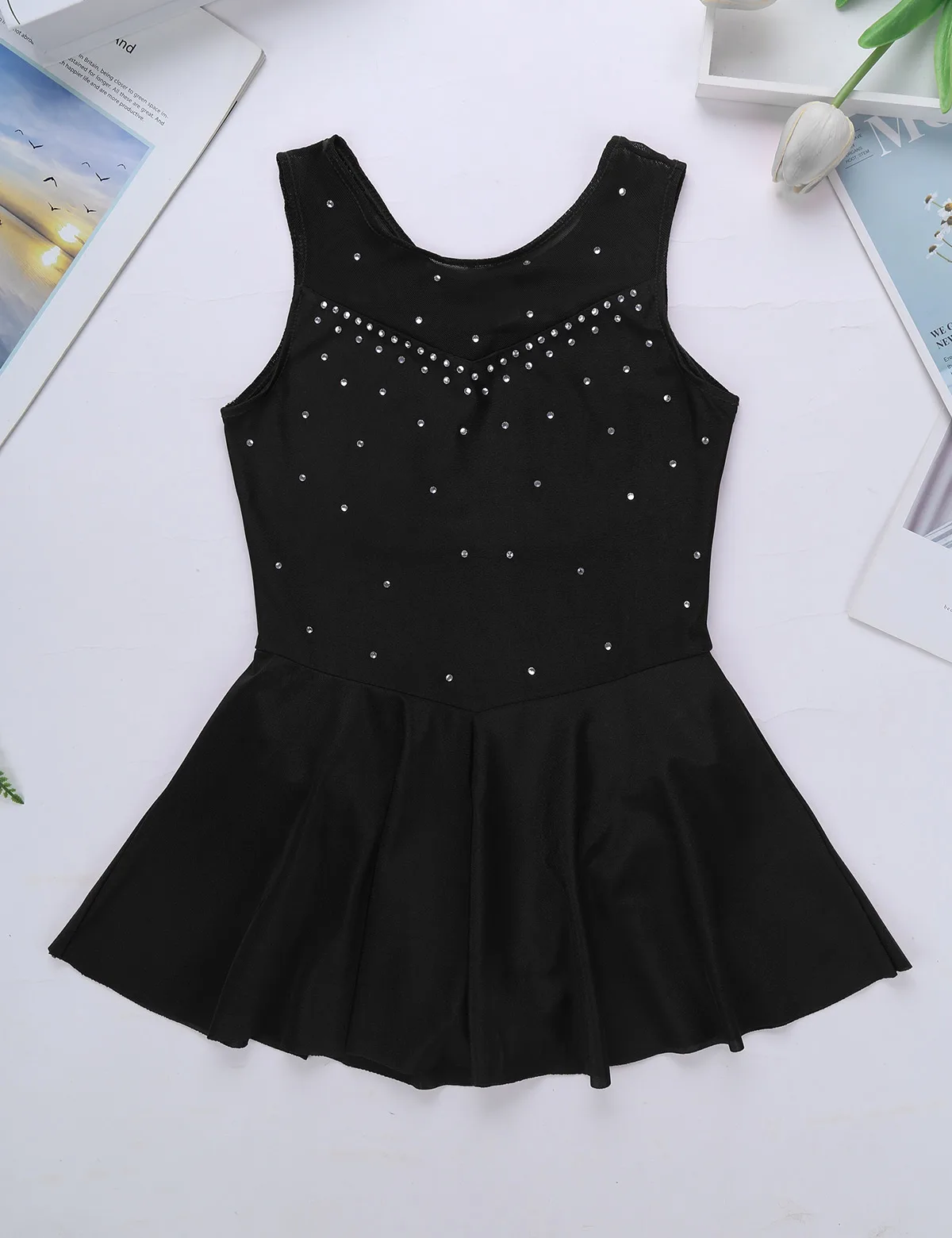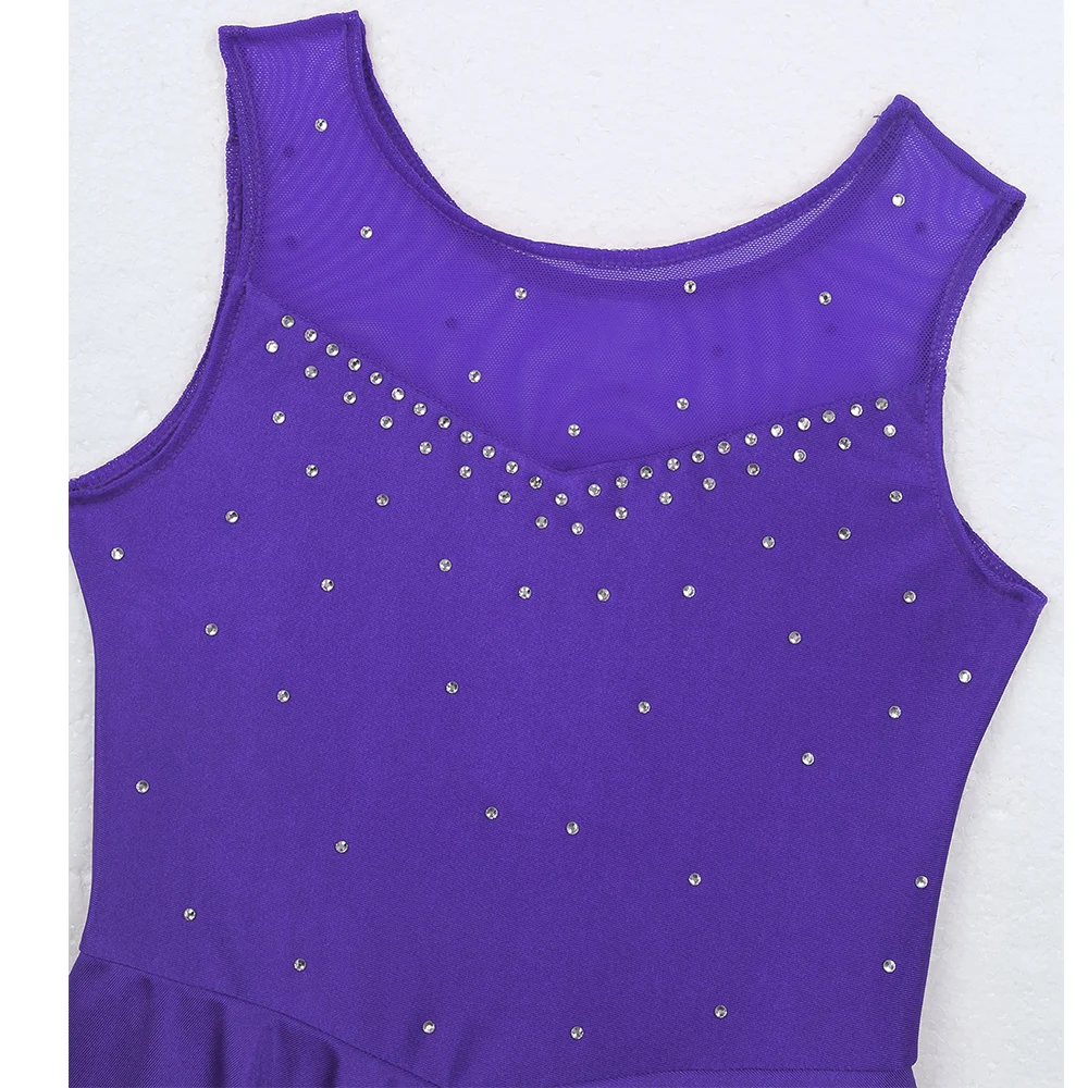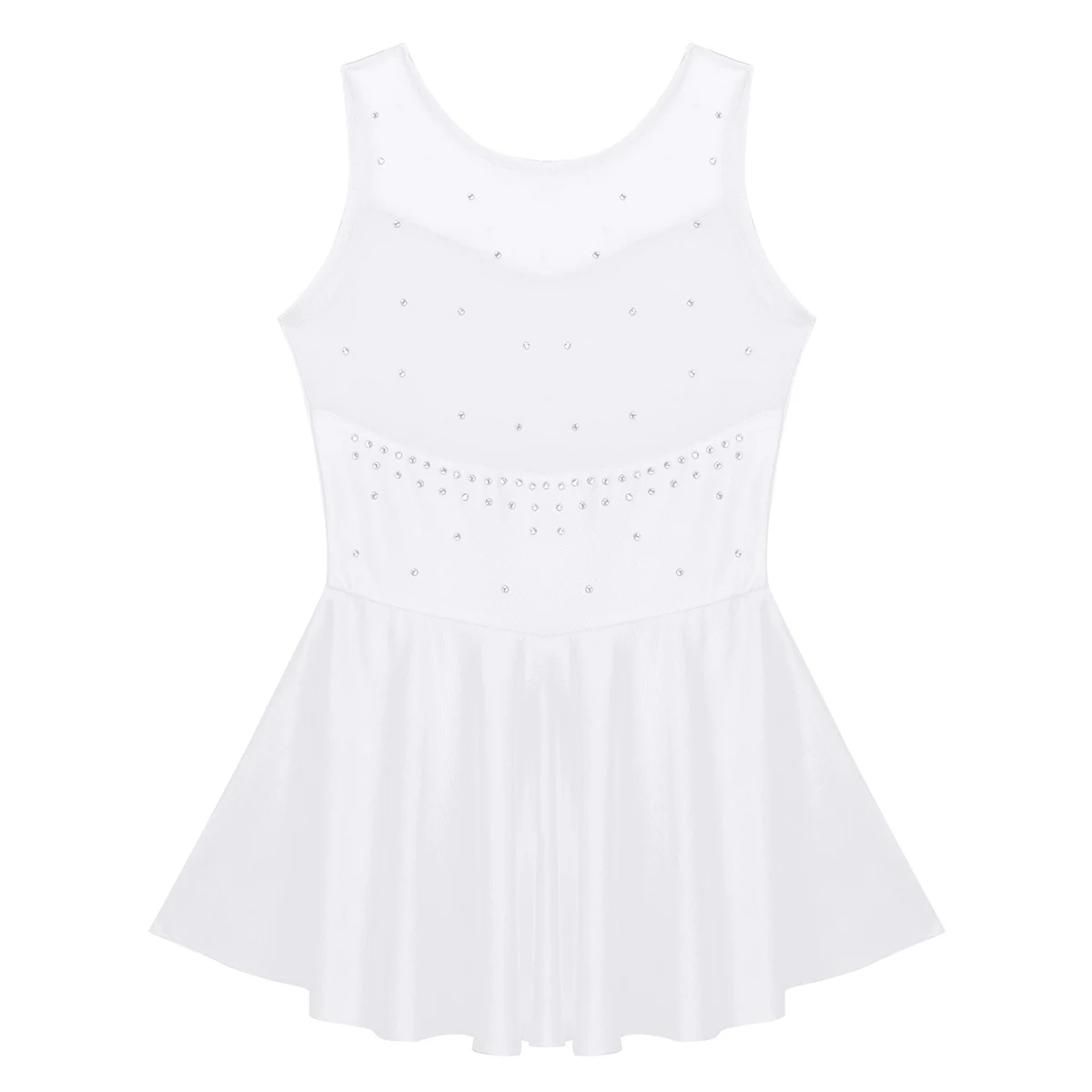 Платье для фигурного катания на коньках для девочек, блестящая СТРАЗА без рукавов для гимнастики, фатиновое платье для катания на роликах, балетное танцевальное трико