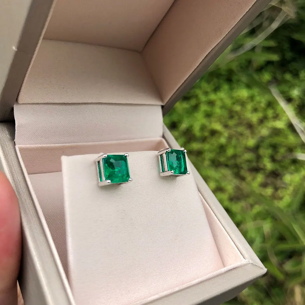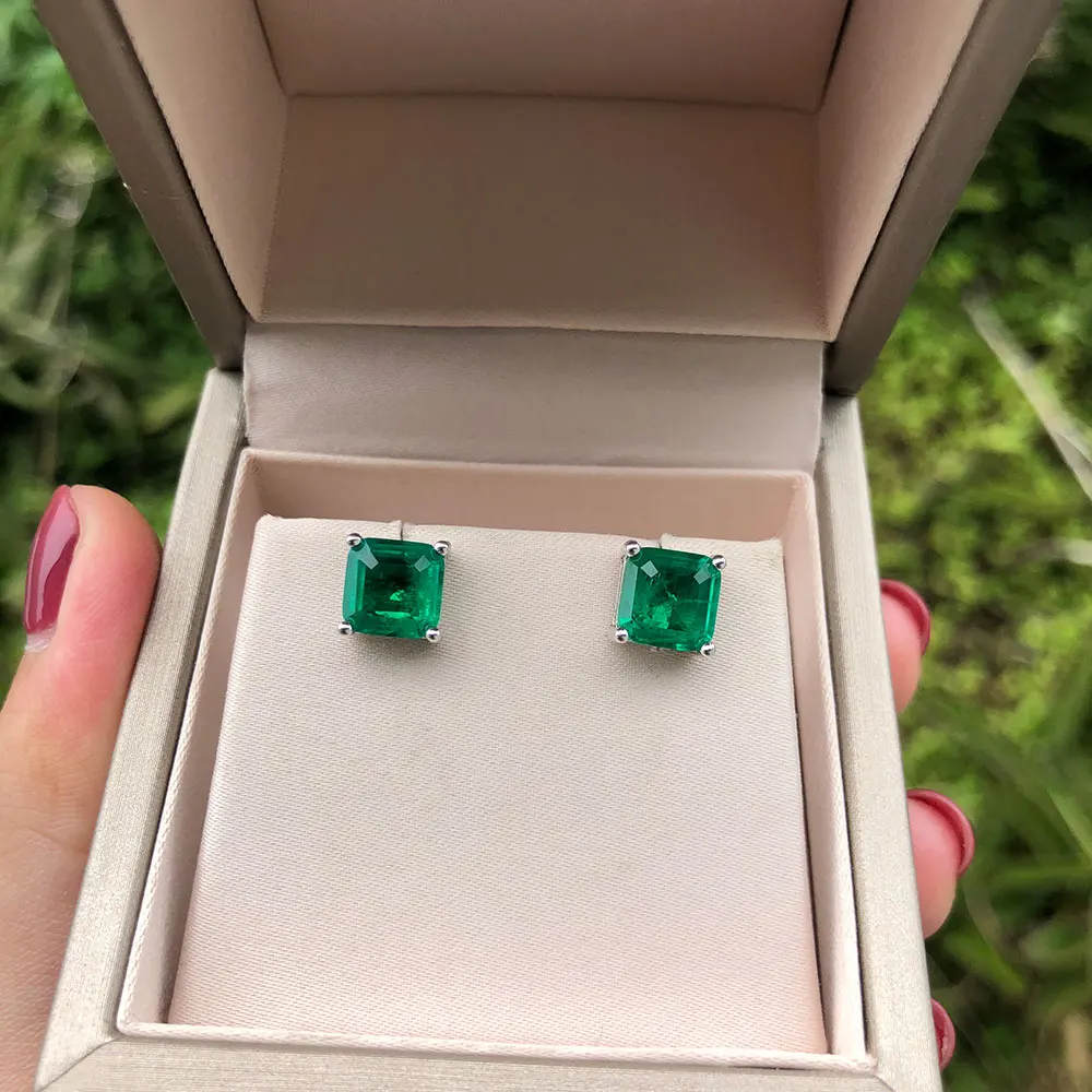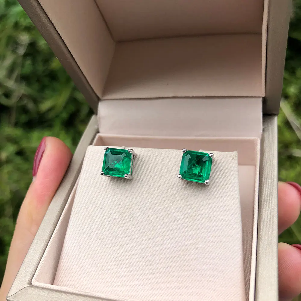 Серьги-гвоздики женские из серебра 100% пробы, с изумрудом