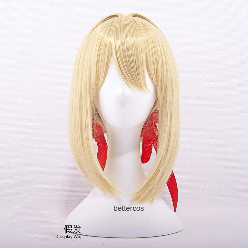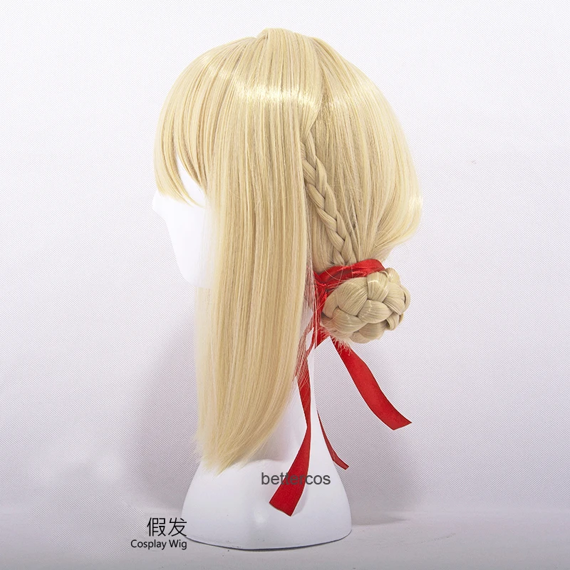 Фиолетовый эвергарден Косплей парики блонд плетеные булочки термостойкие синтетические волосы парик + парик крышка + красные ленты