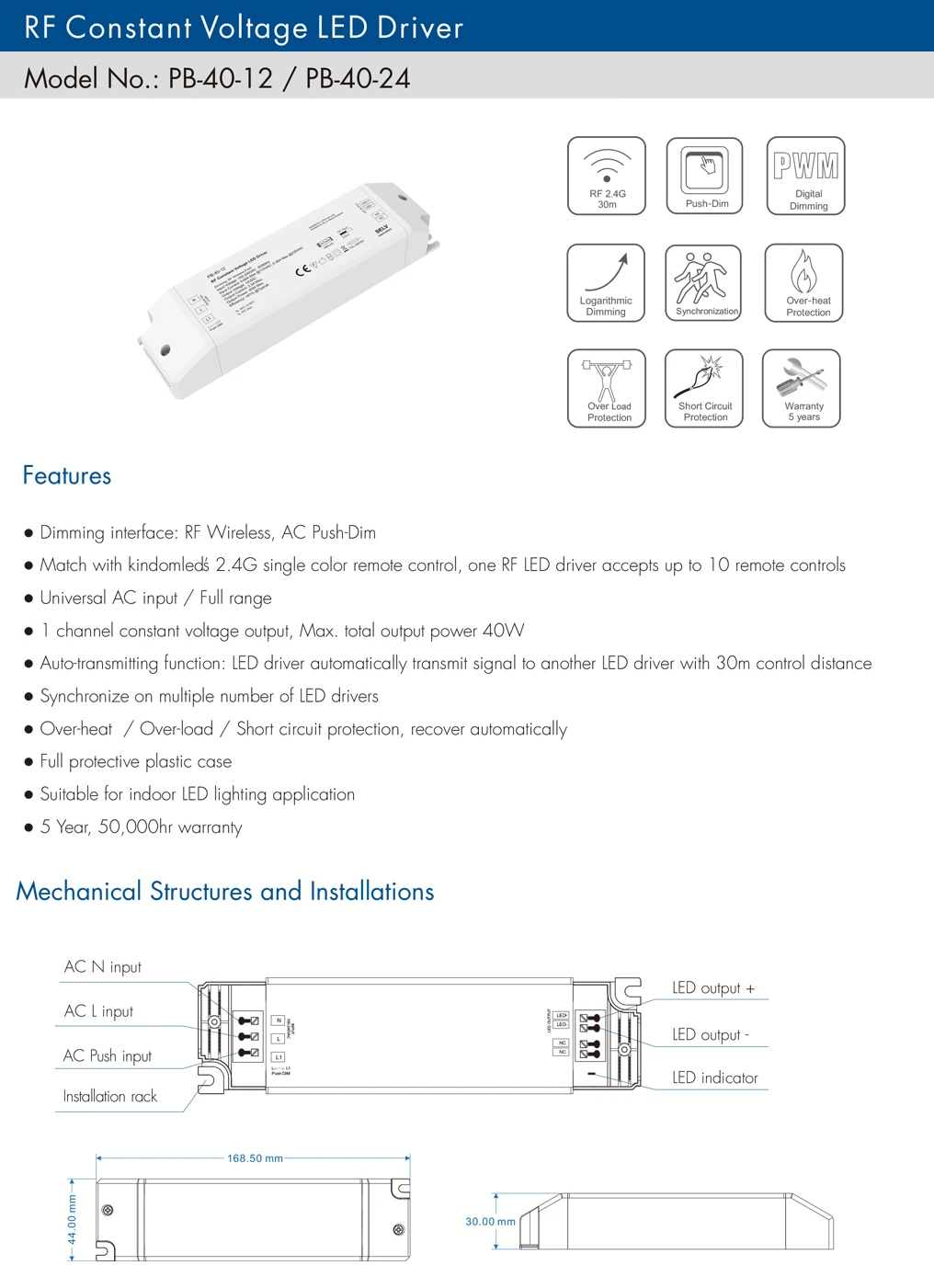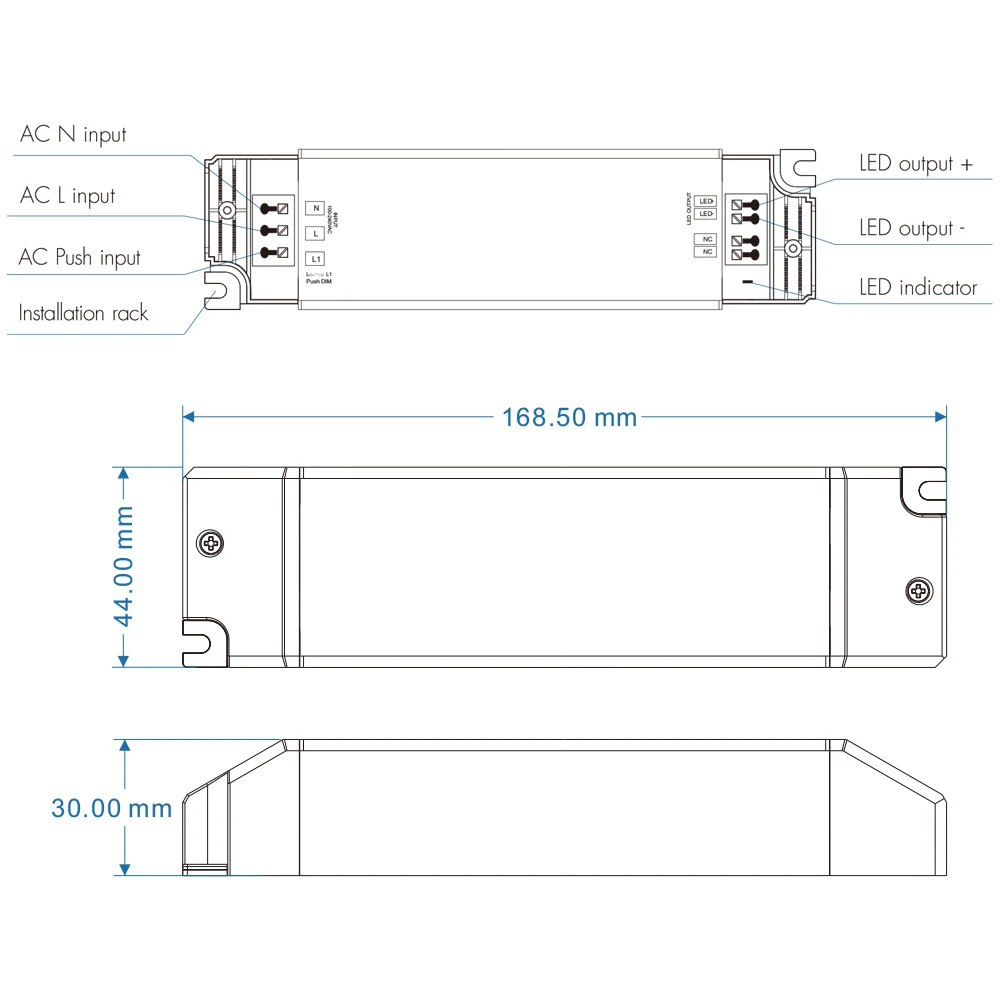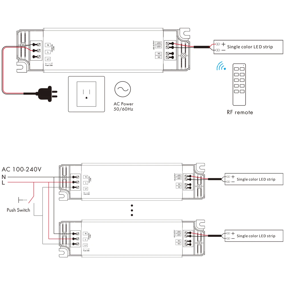 ХарактеристикиPower Supply+Receiver(2.4G RF) +Push Dimmer
