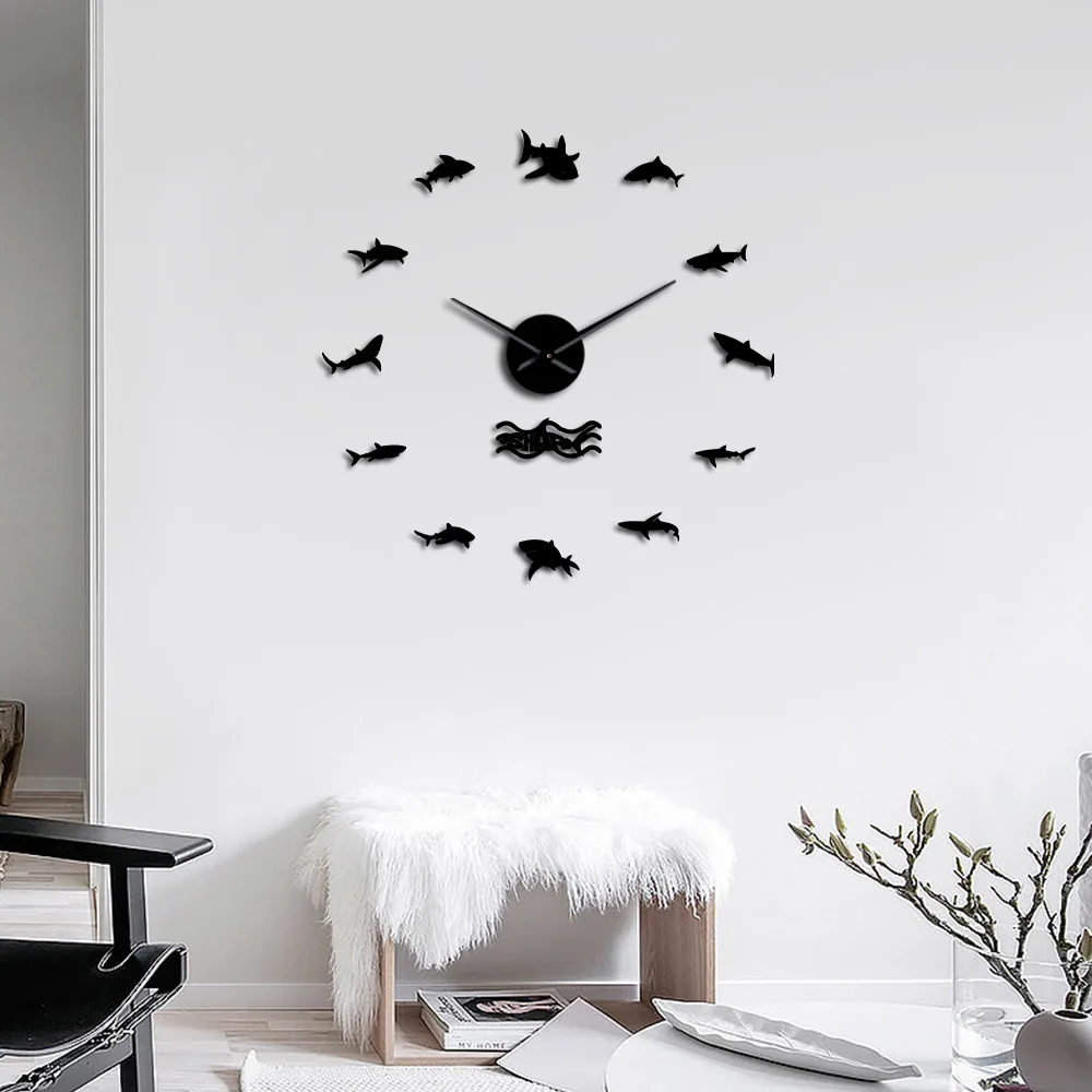 Гигантские бесшумные настенные часы Ocean Shark, Морской Декор, Белая Акула, безрамочные большие часы для детской спальни с 3D наклейками на стену, сделай сам