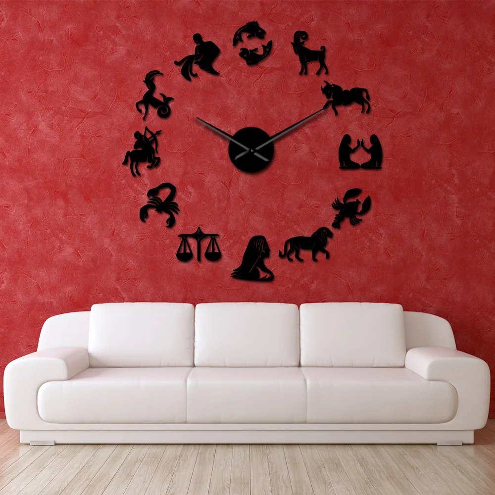 Знаки зодиака настенные художественные наклейки гигантские DIY бескаркасные настенные часы созвездие, астрология Висячие часы Домашние любители украшения подарок