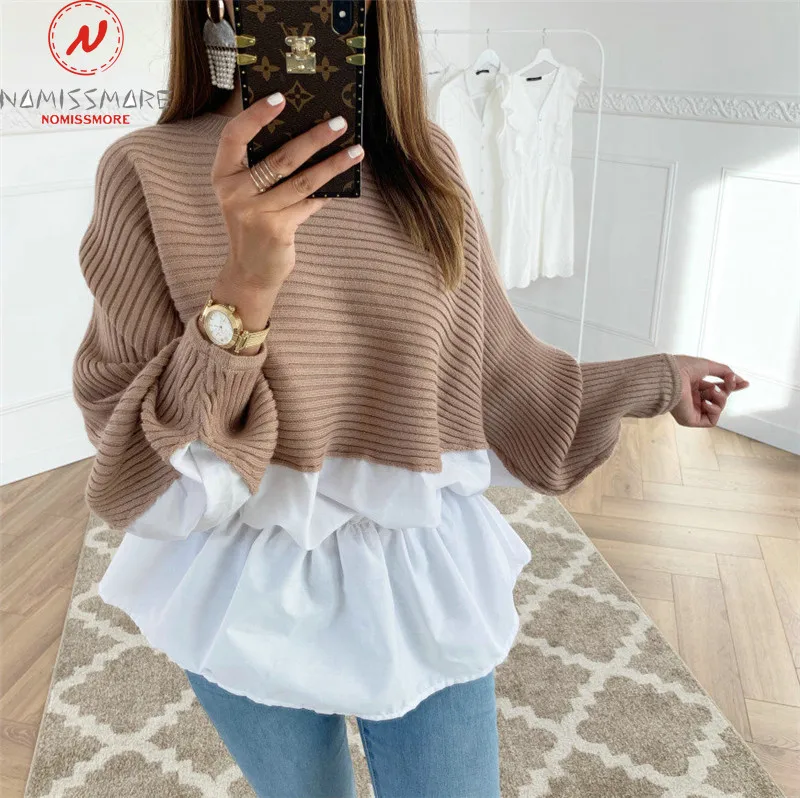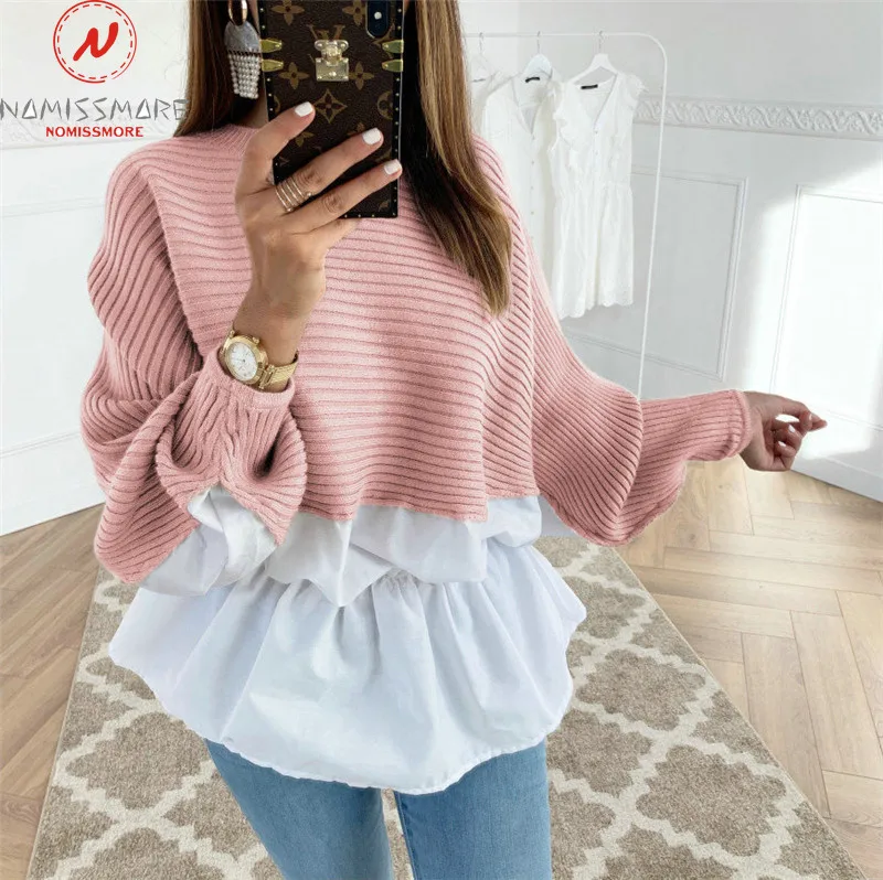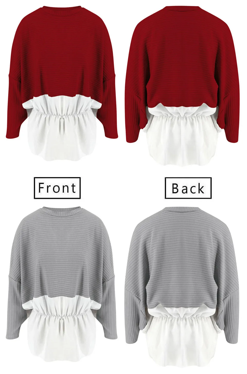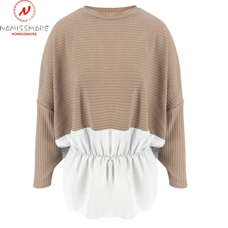 Женская толстовка с круглым вырезом, элегантная повседневная Свободная кофта с цветными вставками в уличном стиле для осени и зимы
