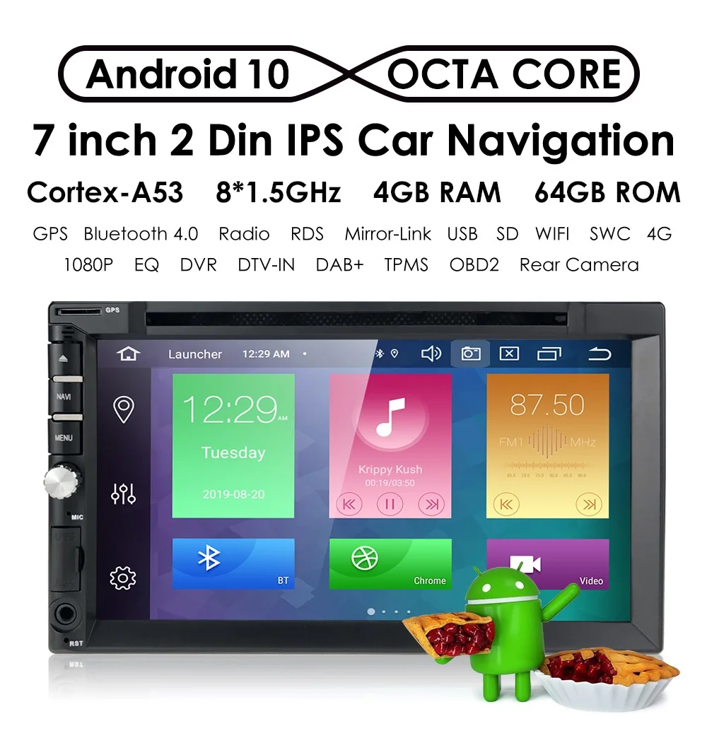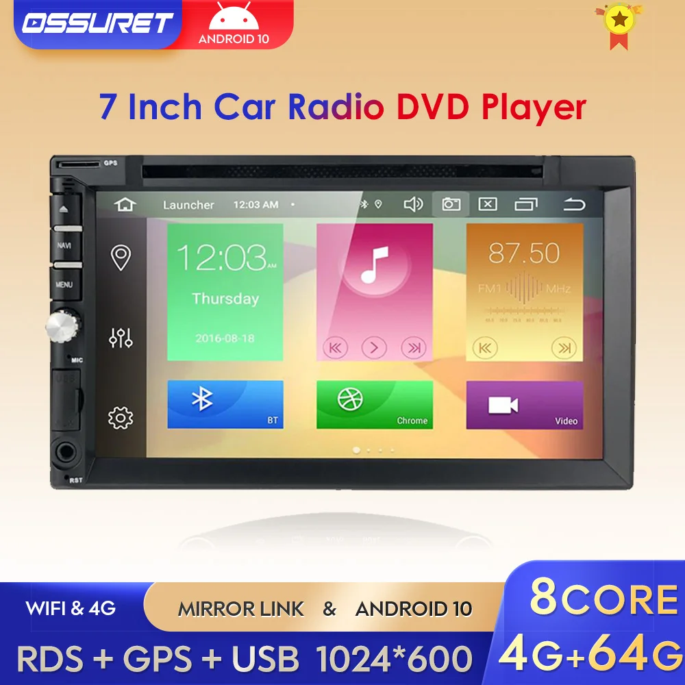 Универсальный автомобильный DVD-плеер, 7 дюймов, Восьмиядерный, 4 Гб ОЗУ, 64 Гб ПЗУ, Android 9,0, 2 DIN, 4G интернет, SIM-модем, автомобильное радио, стерео