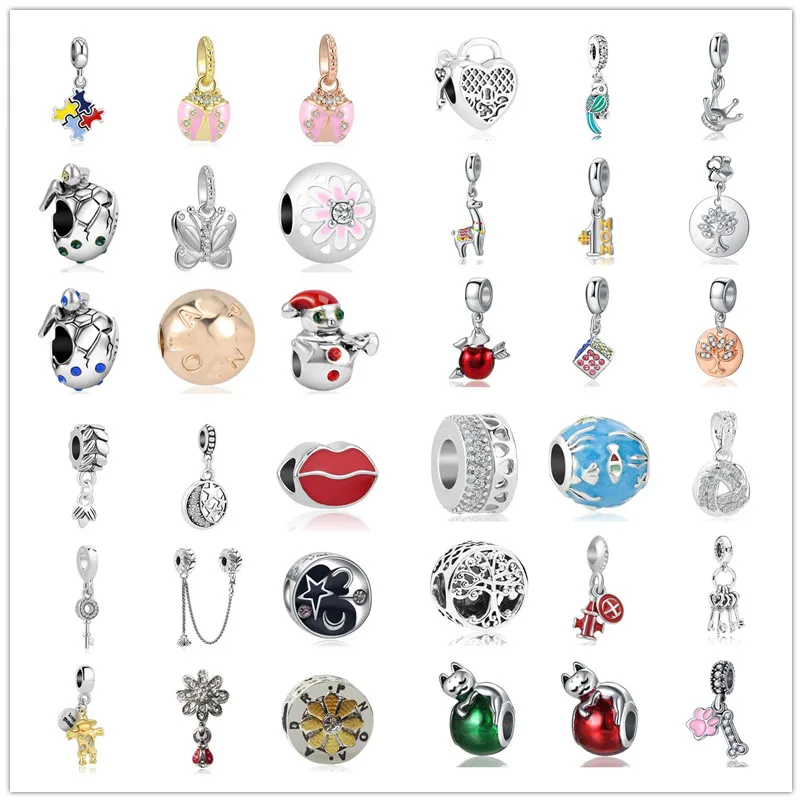 Новинка 2019, семейные бусины божья коровка, яблоко, губа, кошка, Бабочка, ключ сделай сам, подходит для браслета pandora с подвесками для женщин, ювелирные изделия W030