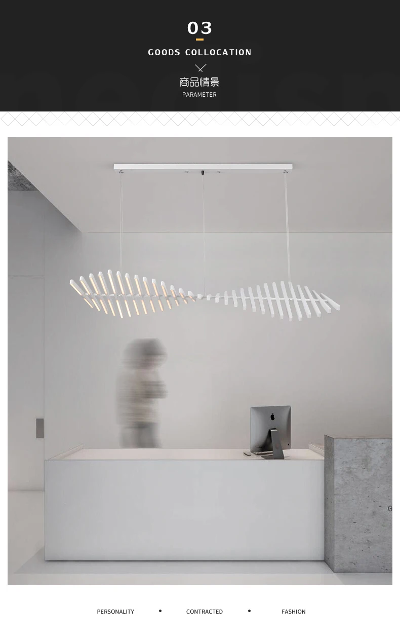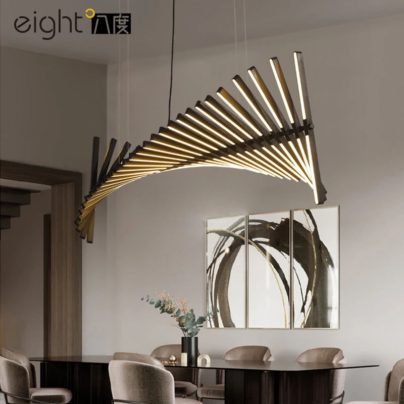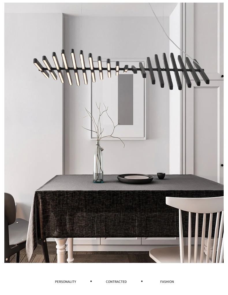Светодиодная люстра в скандинавском стиле для гостиной, дизайнерские подвесные светильники в виде рыбьей кости для столовой, современная новинка офисный подвесной светильник