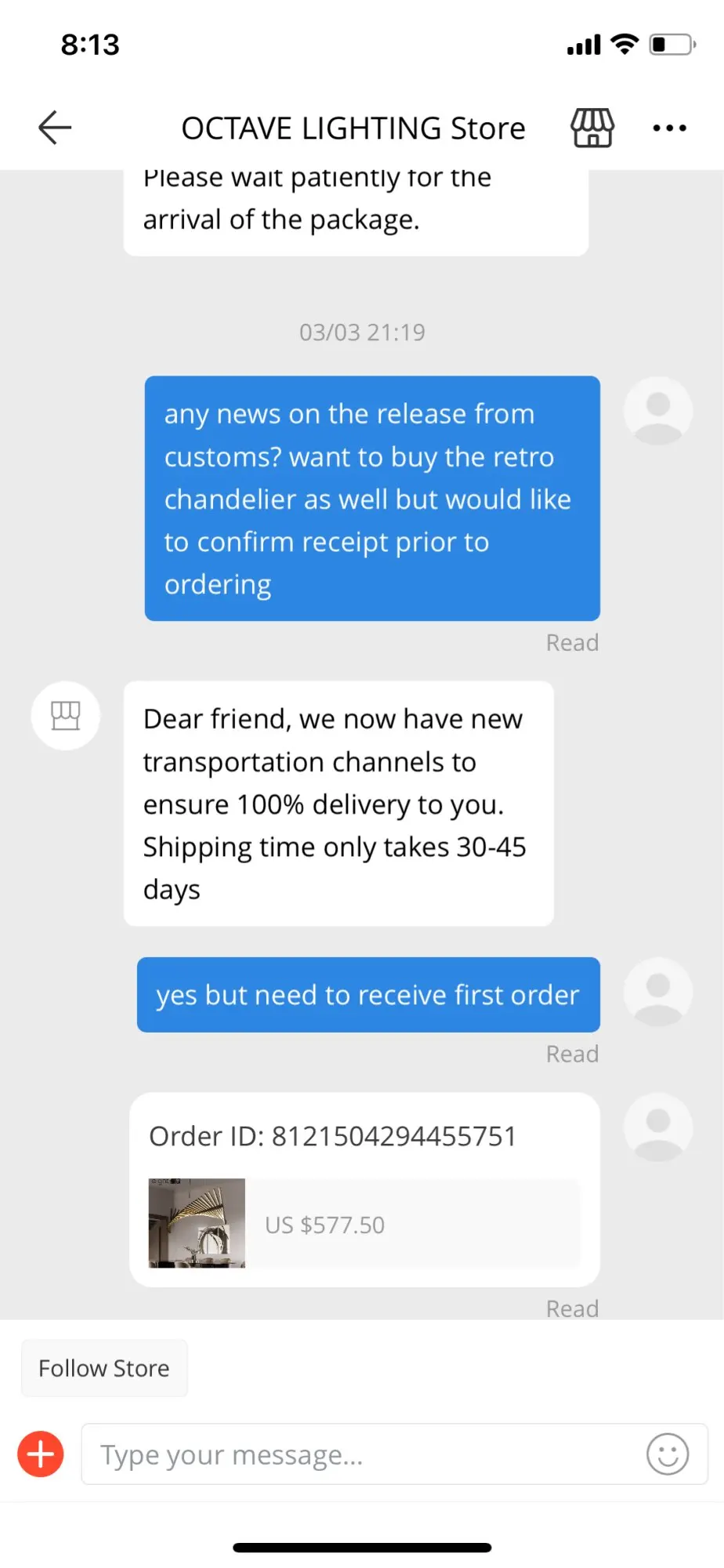 Очень аккуратная и быстрая доставка. Нет проблем, лампа красивая.