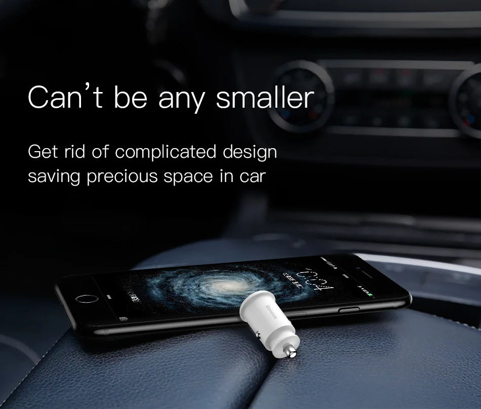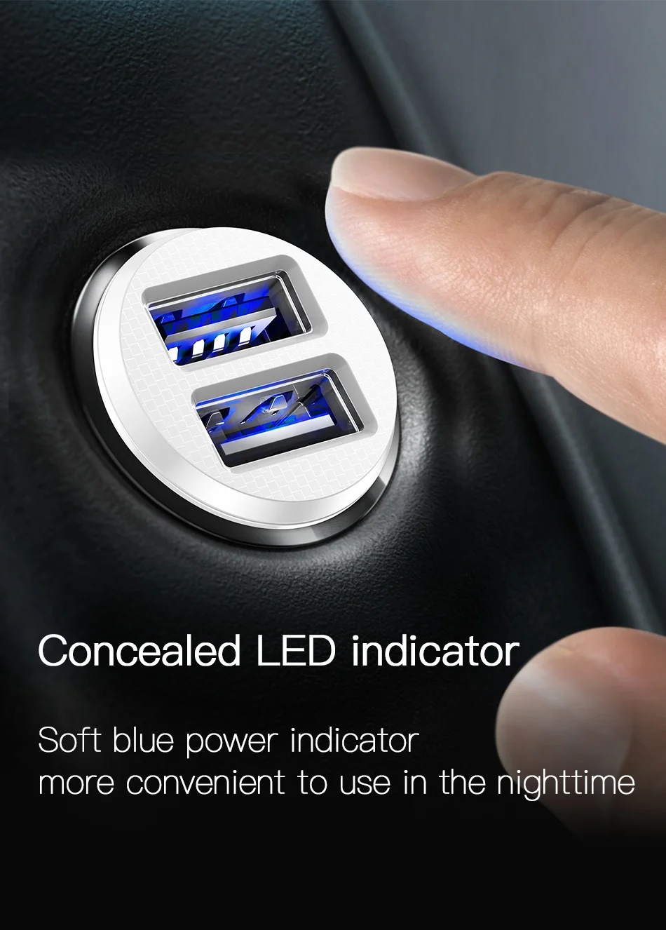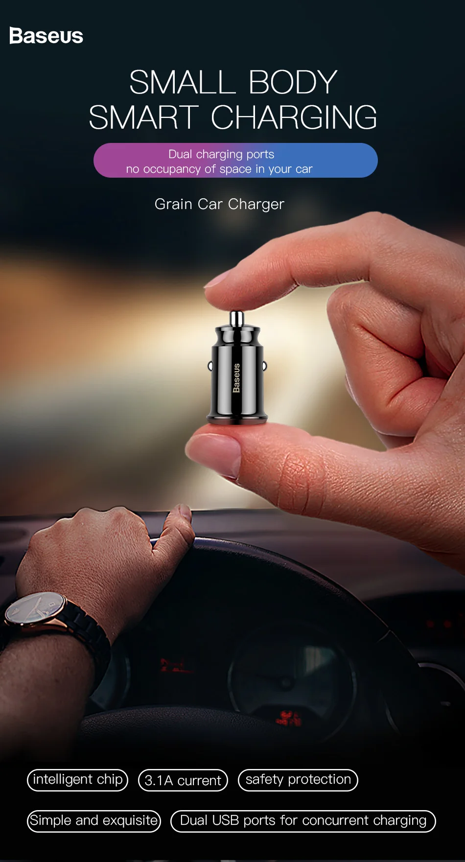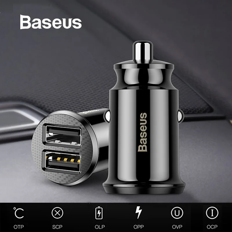 Автомобильное зарядное устройство Baseus, 2 x USB, 3.1 А, цвет черный, разъём прикуривателя, совместимо с iPhone, Samsung, Xiaomi