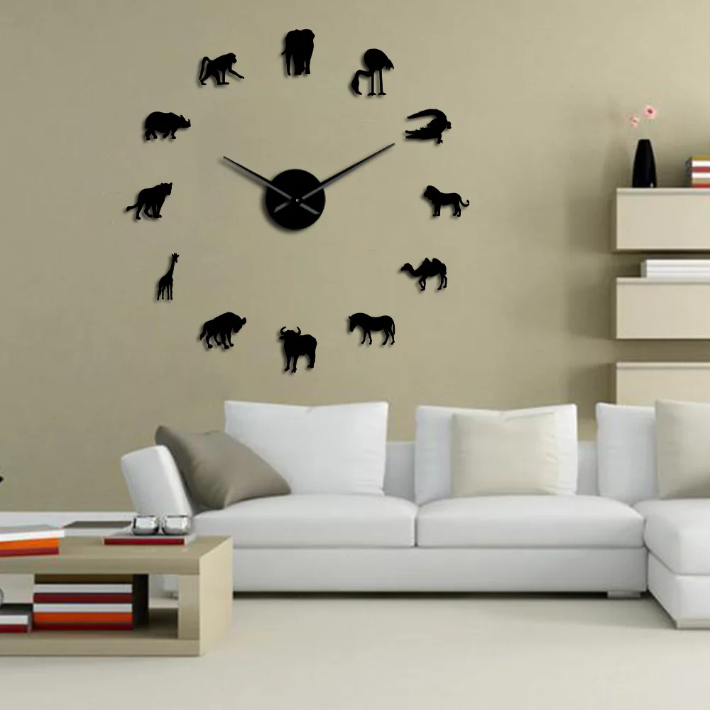 Настенные 3d-наклейки с африканскими животными, бесшумные большие часы сделай сам, гигантское настенное украшение в стиле сафари, дикой природы, бесшумные часы
