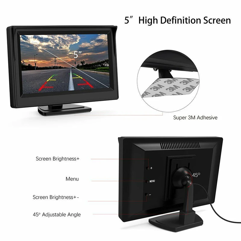 YuanTing 5-дюймовый TFT ЖК-дисплей для автомобиля, цветной дисплей заднего вида, 12-24 В, для парковочной камеры, с 2 опциональными кронштейнами