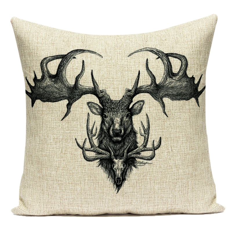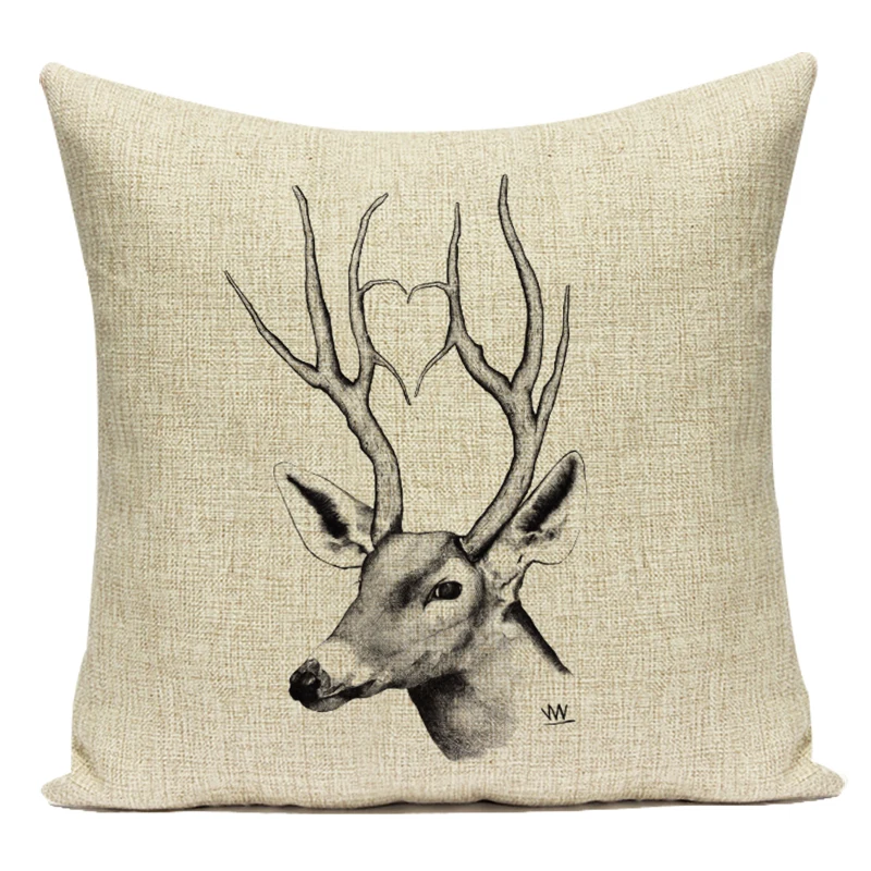 Наволочка для диванной подушки с изображением слона, оленя, совы
