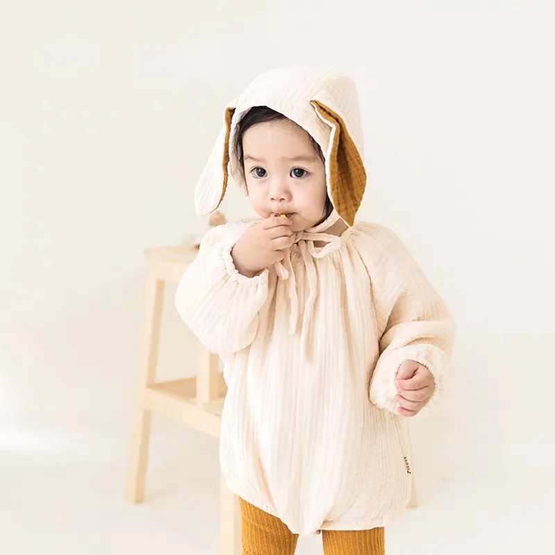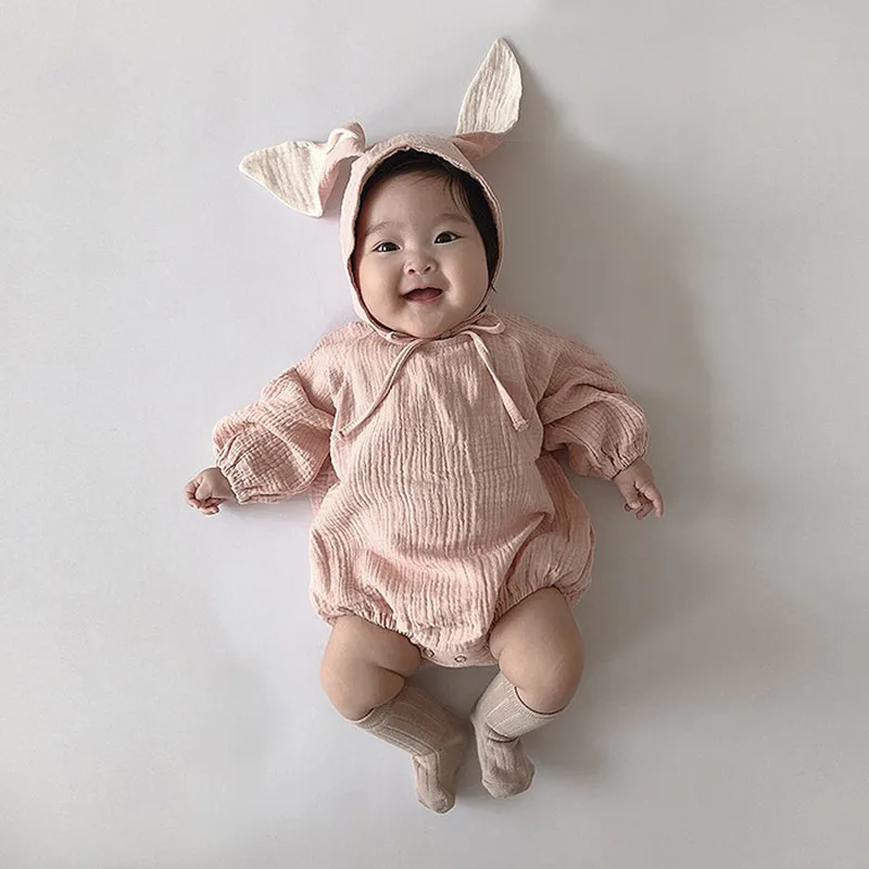 Комбинезоны для маленьких девочек от 0 до 24 месяцев, однотонный комбинезон для маленьких девочек с длинными рукавами и рисунком кролика, Одежда для новорожденных Рождественский костюм для малышей