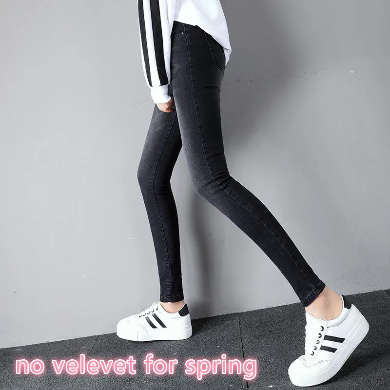 Женские джинсы-карандаш из плотного флиса, зимние джинсы с высокой талией, джинсы-карандаш большого размера, 2019