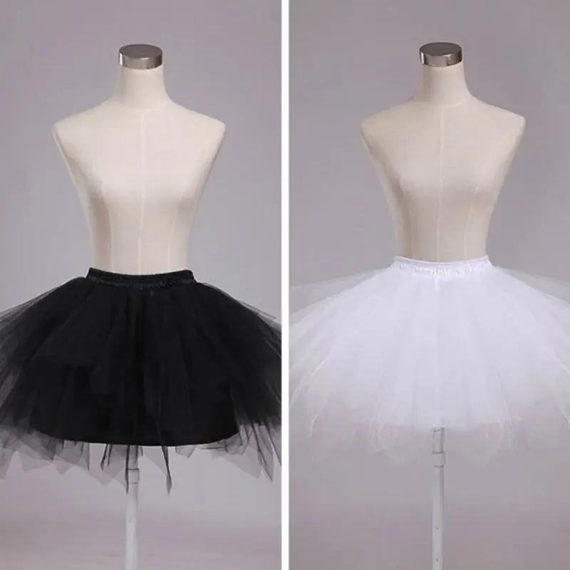 Классический белый/черный цвет, Четырехслойный дизайн, 3 тюля + 1 атласная подкладка, мини-длина выше колена.