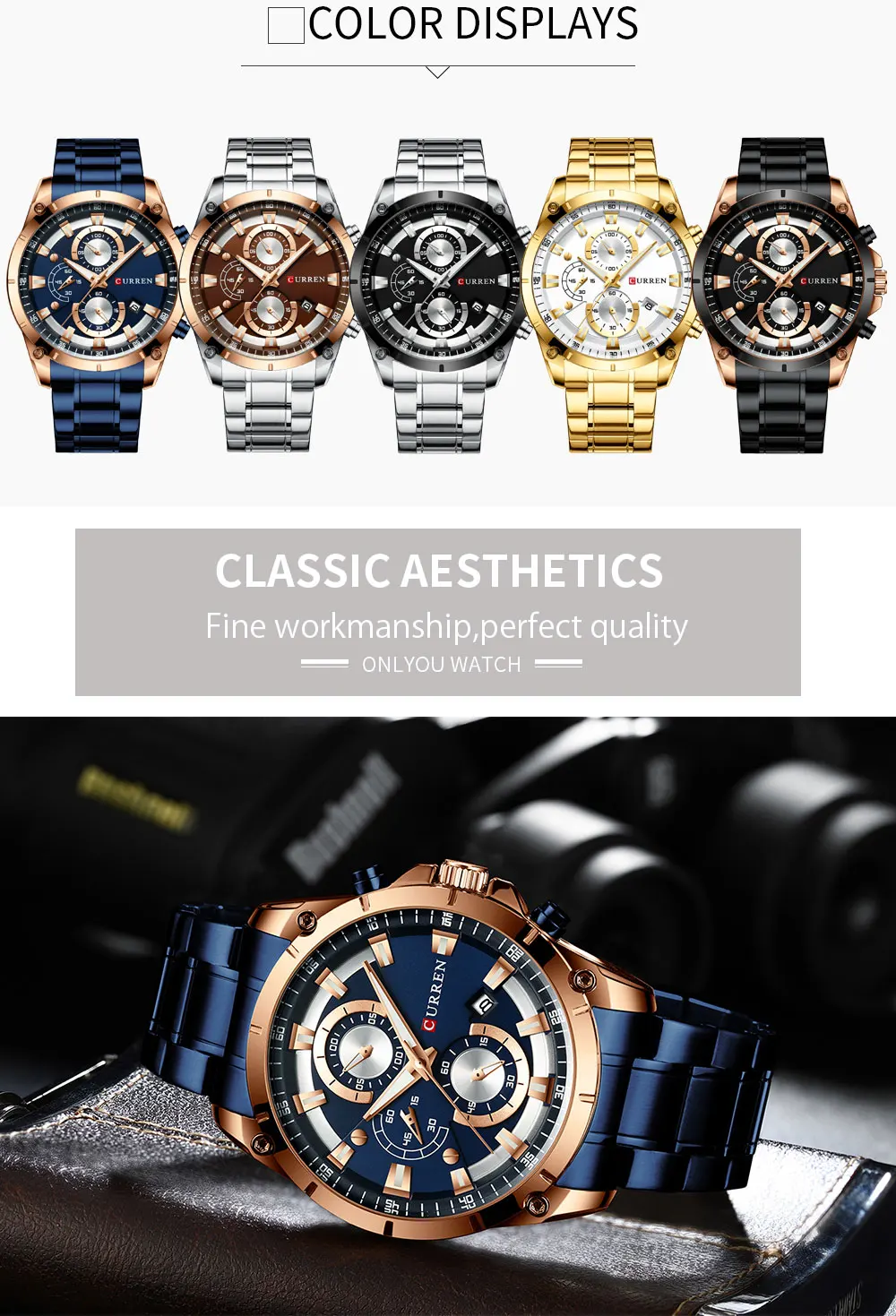 Новинка CURREN Модные мужские часы Топ бренд класса люкс из нержавеющей стали спортивный хронограф кварцевые часы для мужчин Relogio Masculino