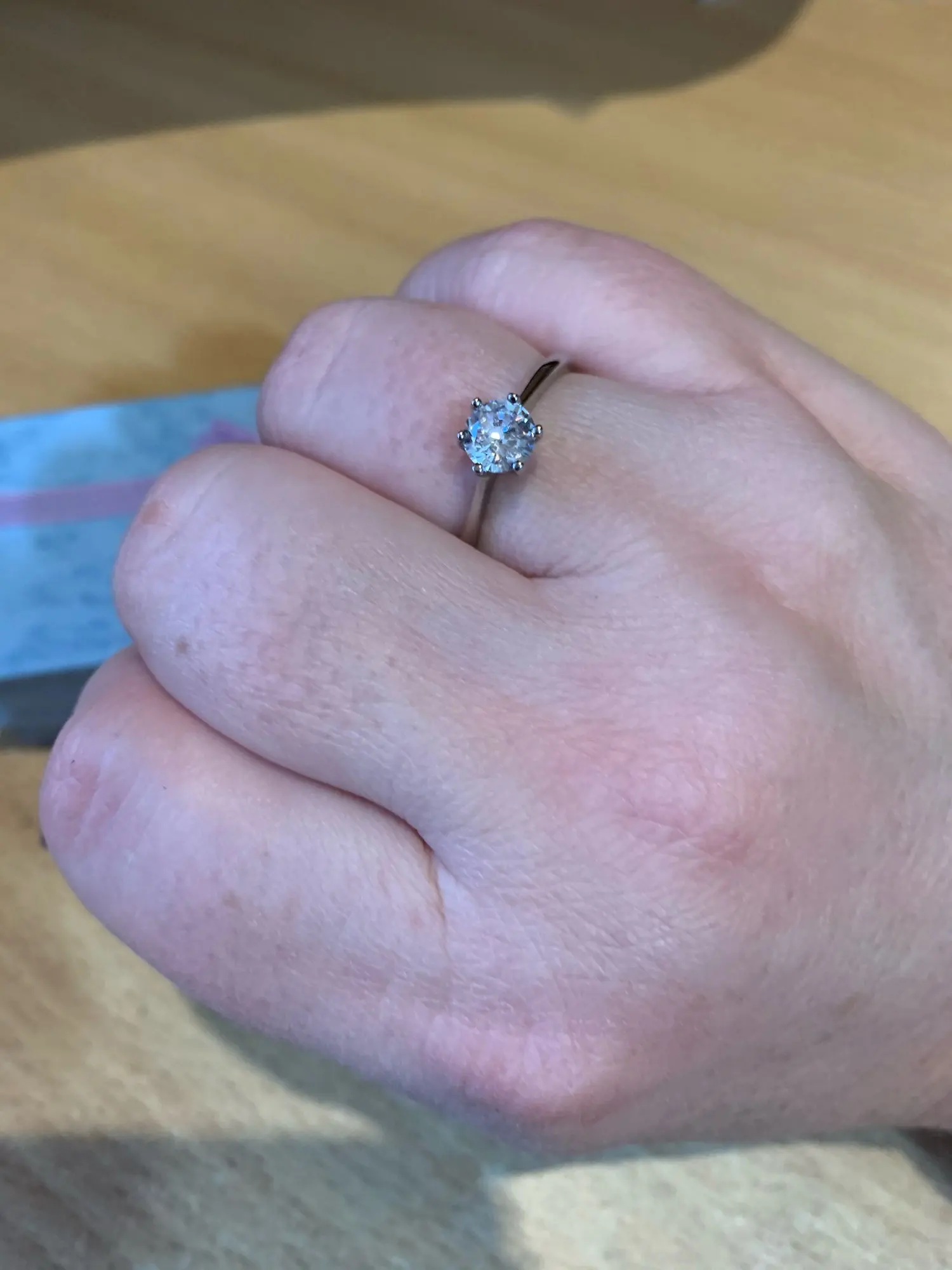 Очень долго шло. Камушек чуть меньше, чем кажется на фото, но не критично. Выглядит дорого и стильно. Рекомендую к покупке!