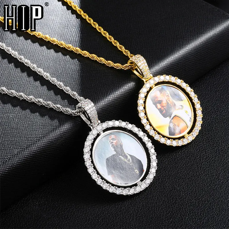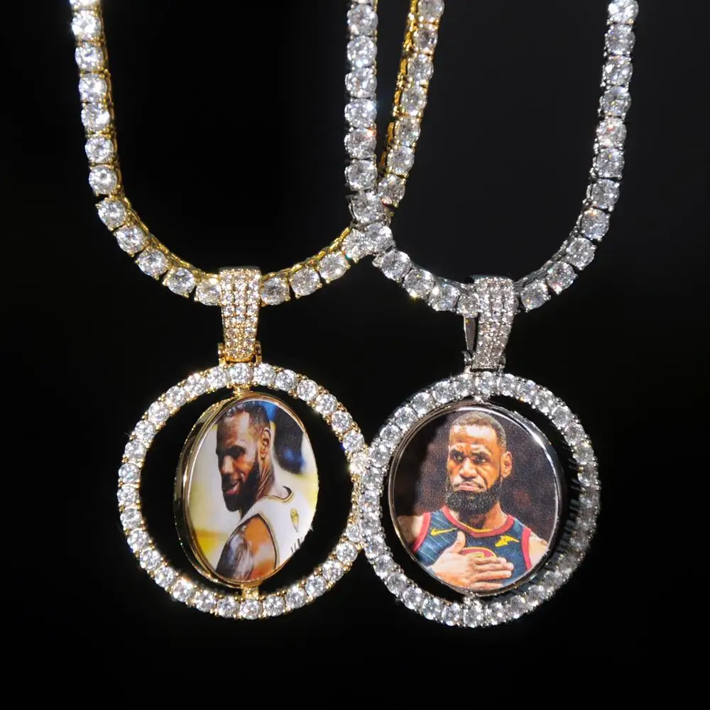 Ожерелье и подвеска для мужчин, двустороннее колье в стиле хип-хоп с кубическим цирконием, круглая, вращающаяся, под заказ, украшение для тенниса