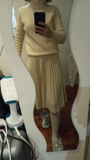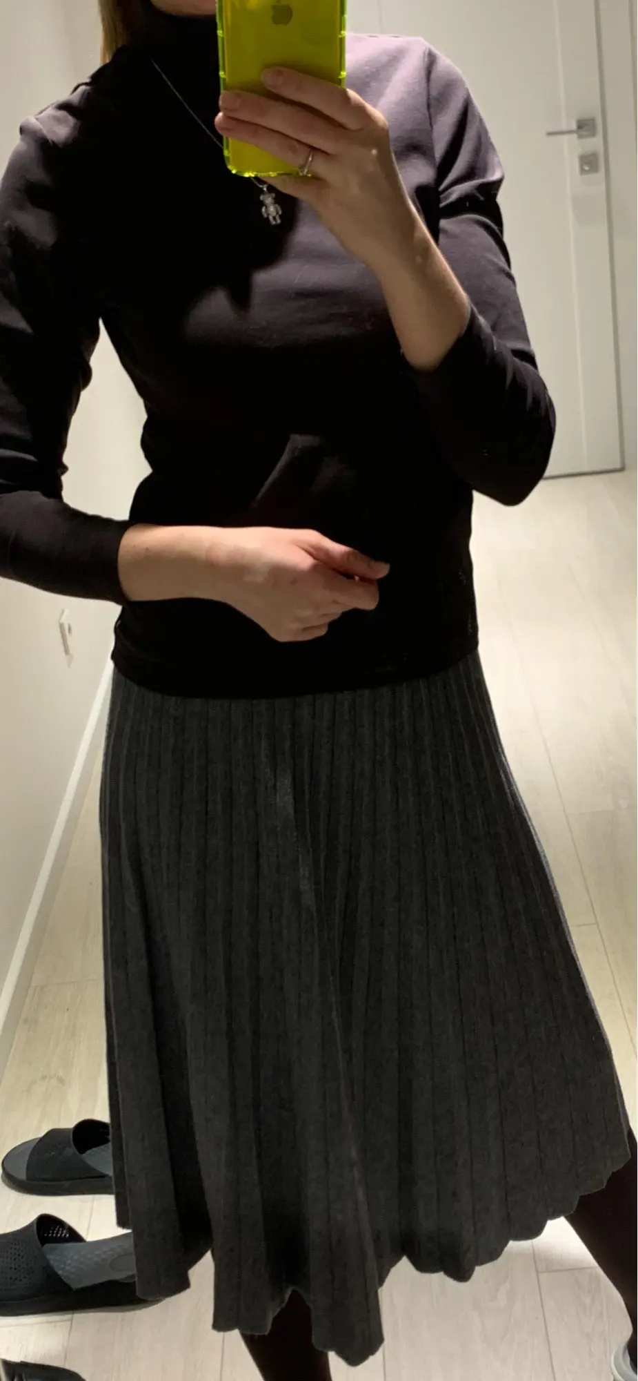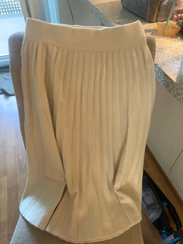 Очень доволен этой юбкой, хотя я считаю, что она менее толстая, чем черная и белая, и я уже покупал раньше. Тем не менее, доставка всегда никелевая, без запаха или стойких складок. Идеальная осень. Я измерил 1 м74 на 55 кг, а юбка опускается под колени, эластичная не используется. Я рекомендую продавцу без колебаний
