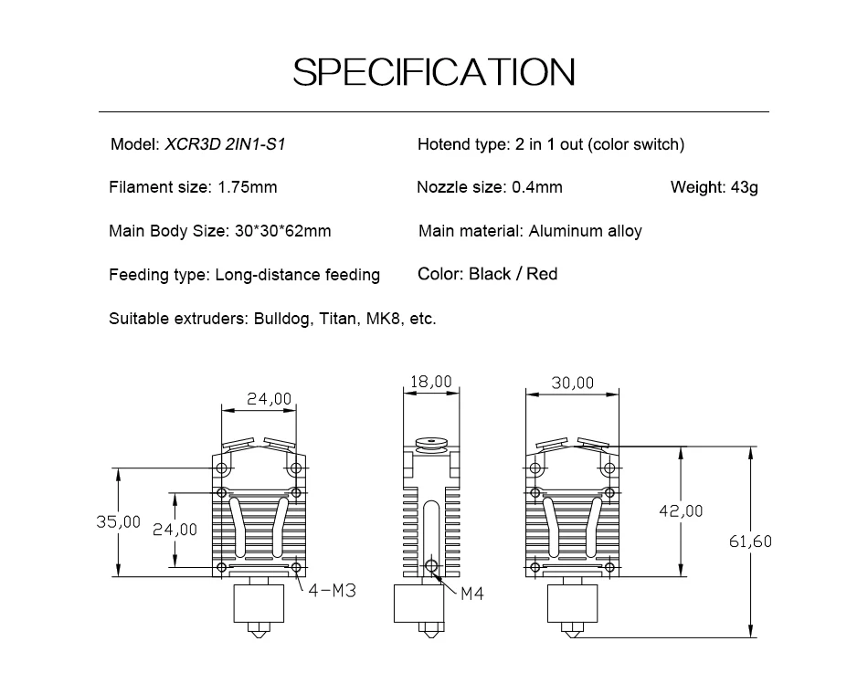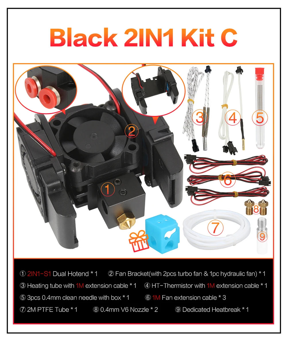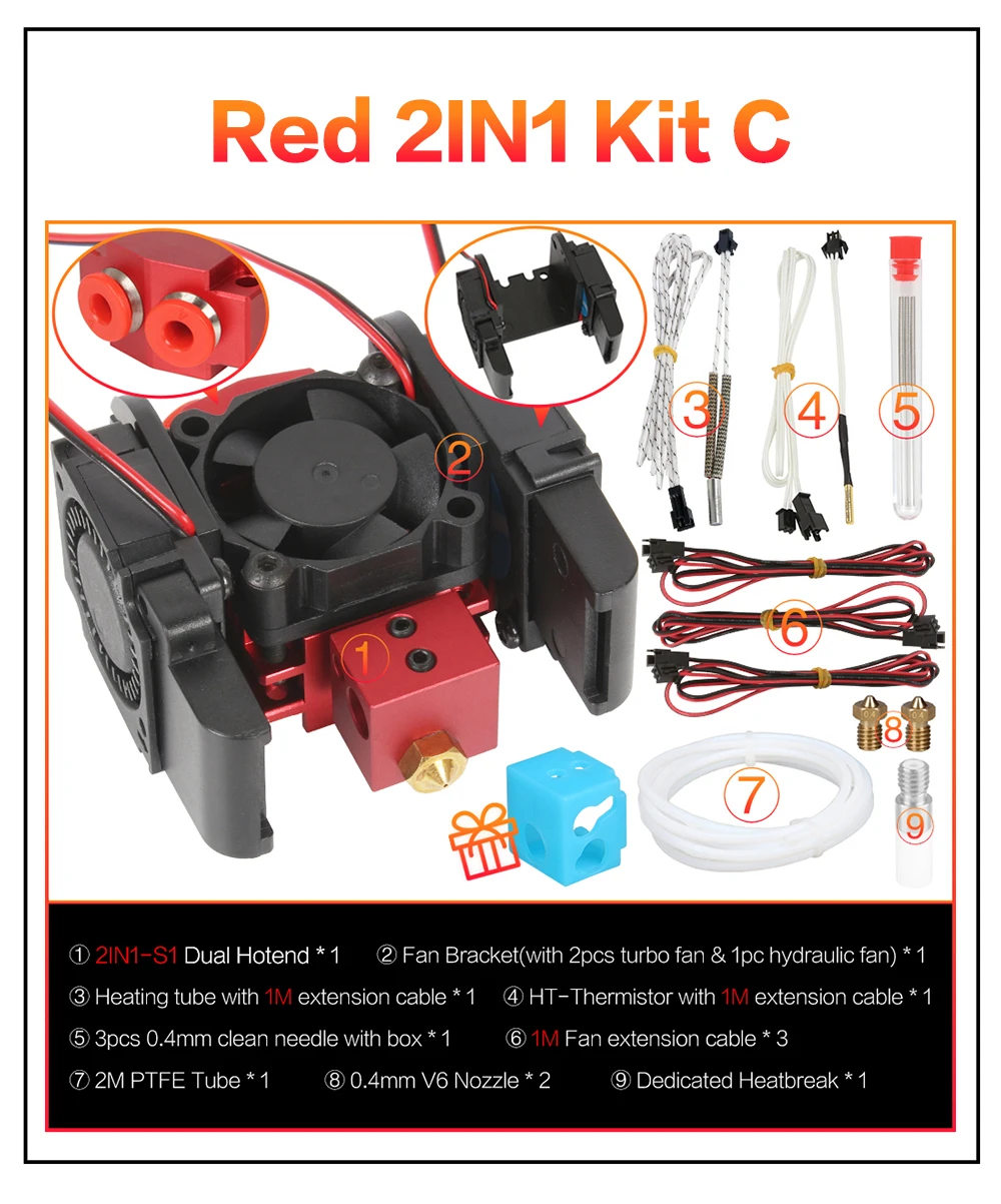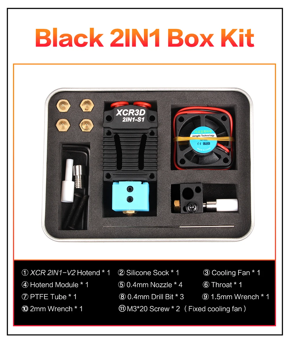 3D-принтер XCR3D 2IN1-S1 Hotend, 2 в 1, выключатель, цветной Orbiter, экструдер, J-головка, 12 В24 В, 1,75 мм, охлаждающий вентилятор