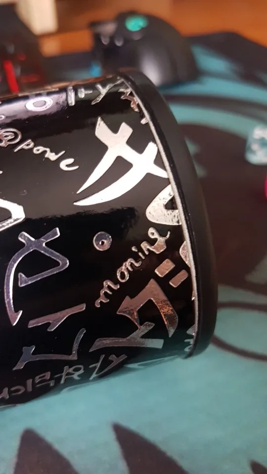 Выглядит довольно хорошо. Цвета на рисунке сбоку не броские, но хорошо видны, и вы можете почувствовать их. Боковой материал немного мягкий-> прекрасно выглядит в сочетании. Нижняя часть имеет хороший, сильный цвет и приятный (кроме маленького пузыря, второй чашки не было). Внутри нет ничего особенного, простой черный прямой пластик.