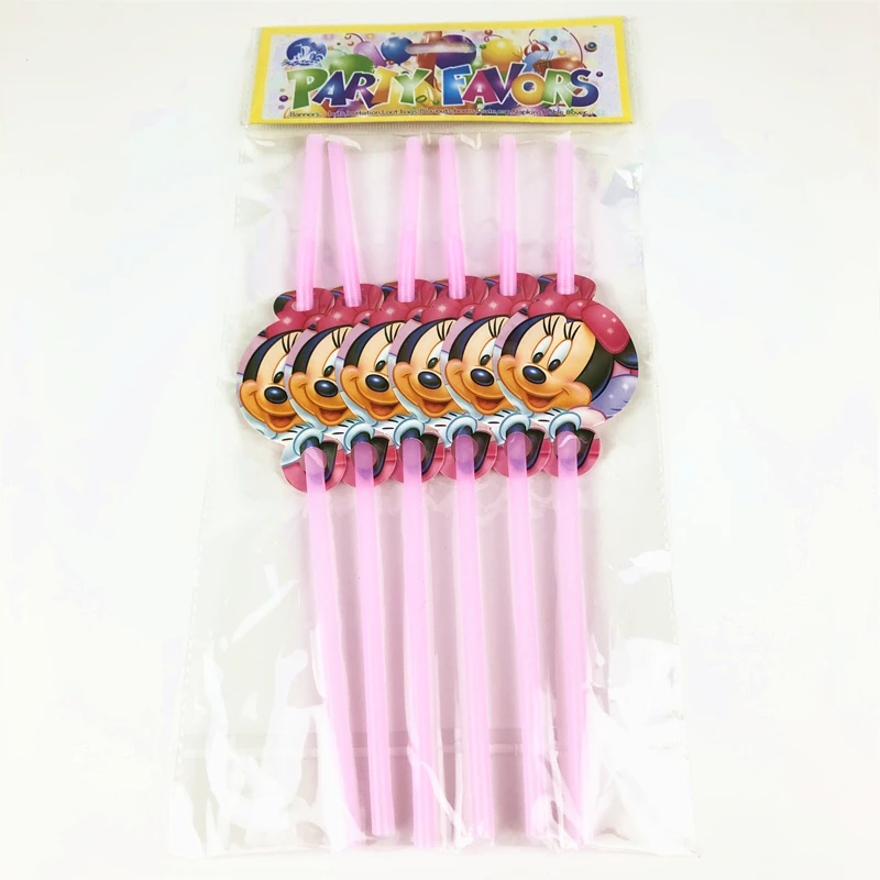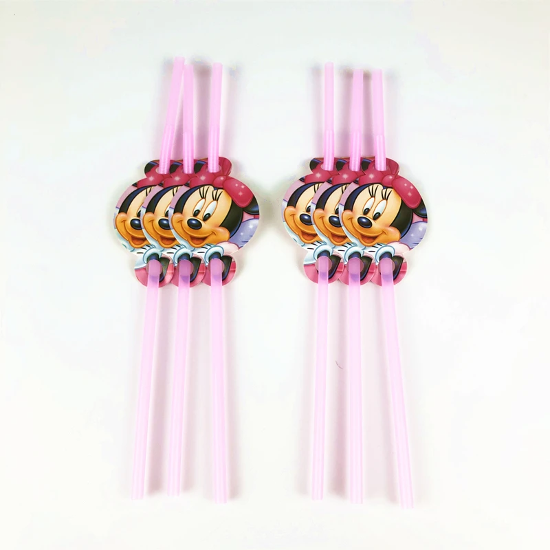 6 шт., пластиковые гибкие трубочки для напитков Минни Маус