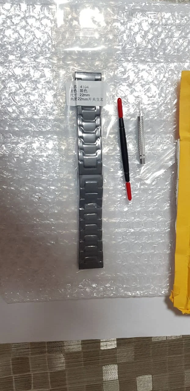 Инструмент, который вы отправили мне, был сломан, когда я попробовал удалить булавку. Я также купил ремешок диаметром 22 мм, что очень легко снять булавку. Но для браслета 20 мм невозможно снять булавку. Замените ремешок 20 мм.