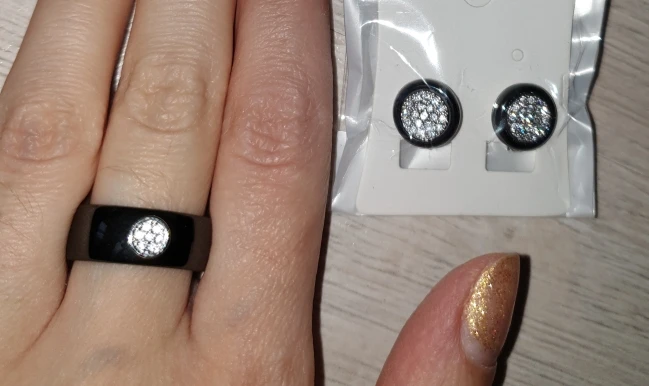 Доставка 2 месяца.Кольцо и серьги от ювелирного изделия не отличишь,8 размер на 18,ношу две недели все норм,подобрала в этом магазине целый набор ещё кулон и цепочку.