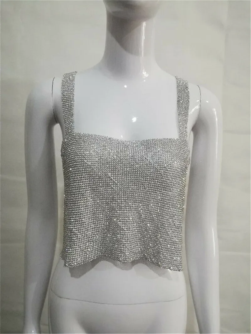 Женские вечерние Клубные майки стразы, летние пляжные бюстье с кристаллами, кроп-топы, майки, серебристые, золотистые, черные