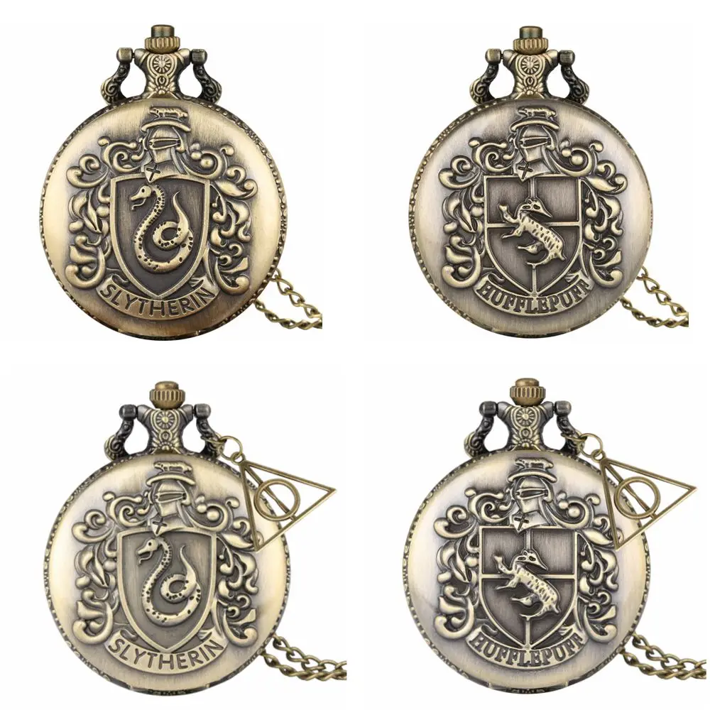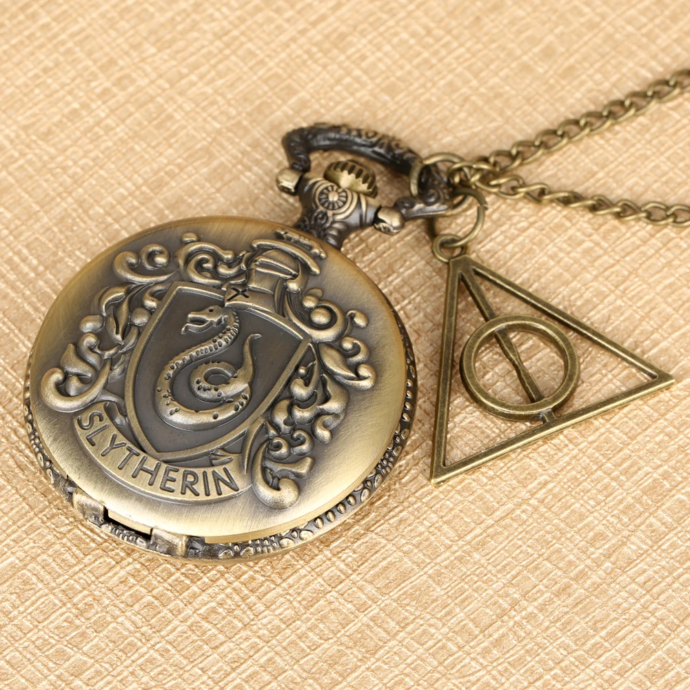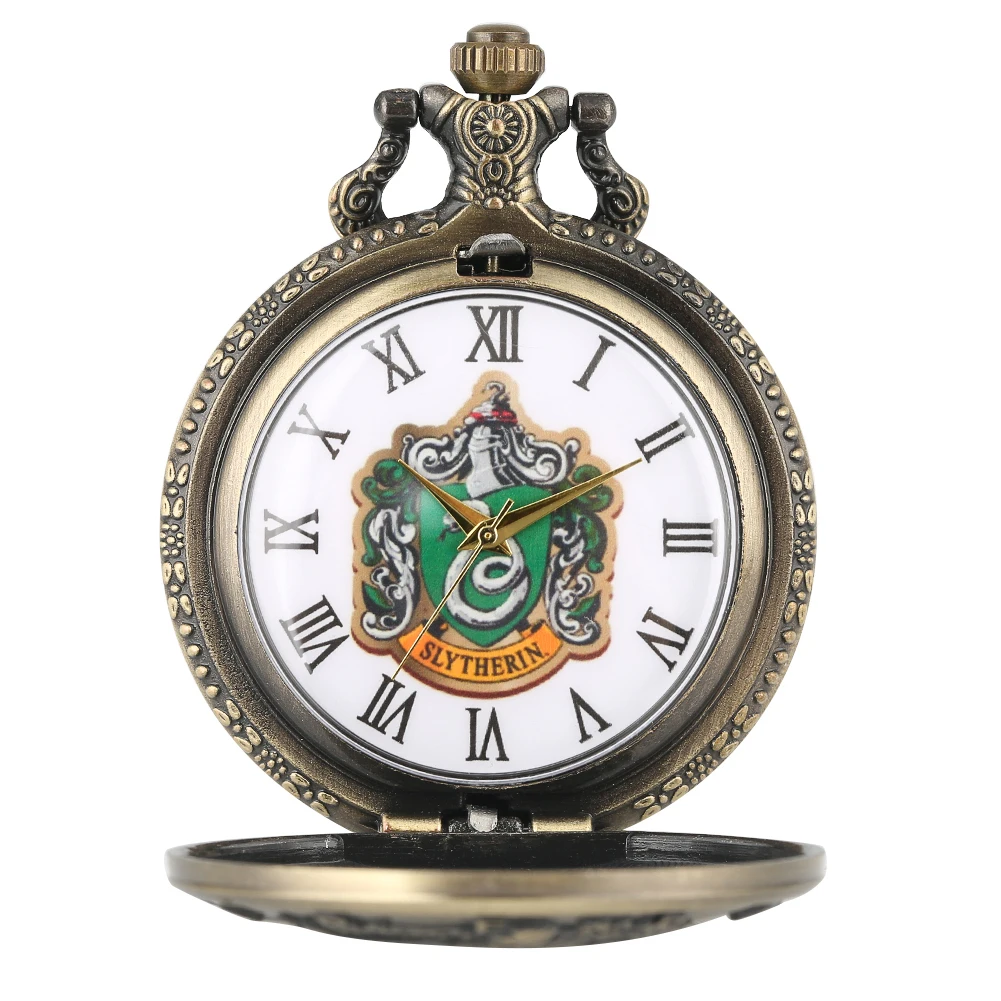 Бронзовый Слизерин Дом тема кварцевые карманные часы деликатное ожерелье цепь белые римские цифры Циферблат часы унисекс подарки